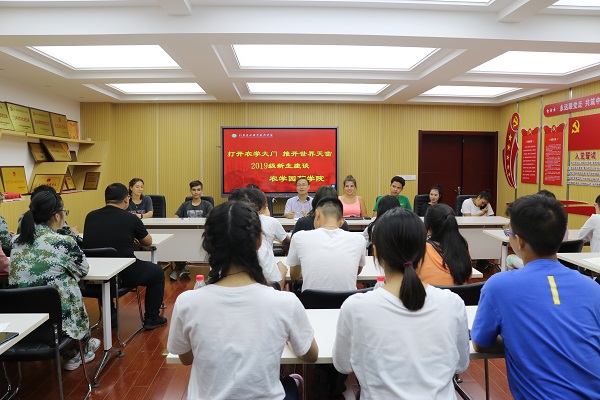 为了进一步关心和帮助新生适应大学学习和生活,9月17日晚上,农学园艺学院在研发楼会议室举行了“打开农学大门 推开世界天窗”2019级新生座谈会。农学园艺学院党总支副书记王全智、张更老师、辅导员任小俊、德国短期留学生Tamara、5名留学生和19级部分新生代表参加了此次座谈。