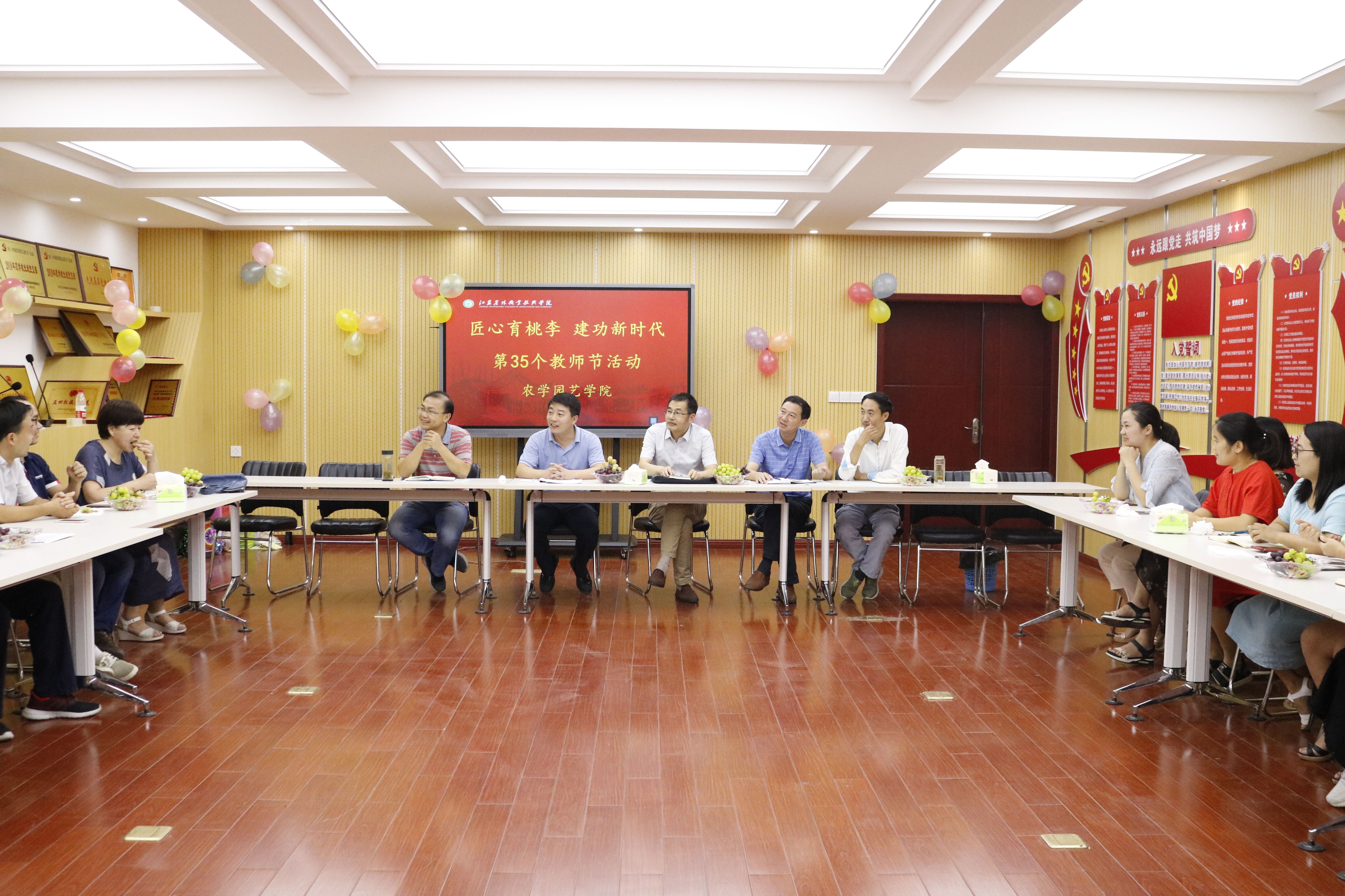 为庆祝第35个教师节,9月10日下午,农学园艺学院在研发楼二楼会议室开展了“匠心育桃李,建功新时代”教师节座谈会。学院纪委书记周国义、农学园艺学院院长颜志明,书记杨宝林,副院长解振强及部分教师参加了此次活动,座谈会由学院副书记王全智主持。