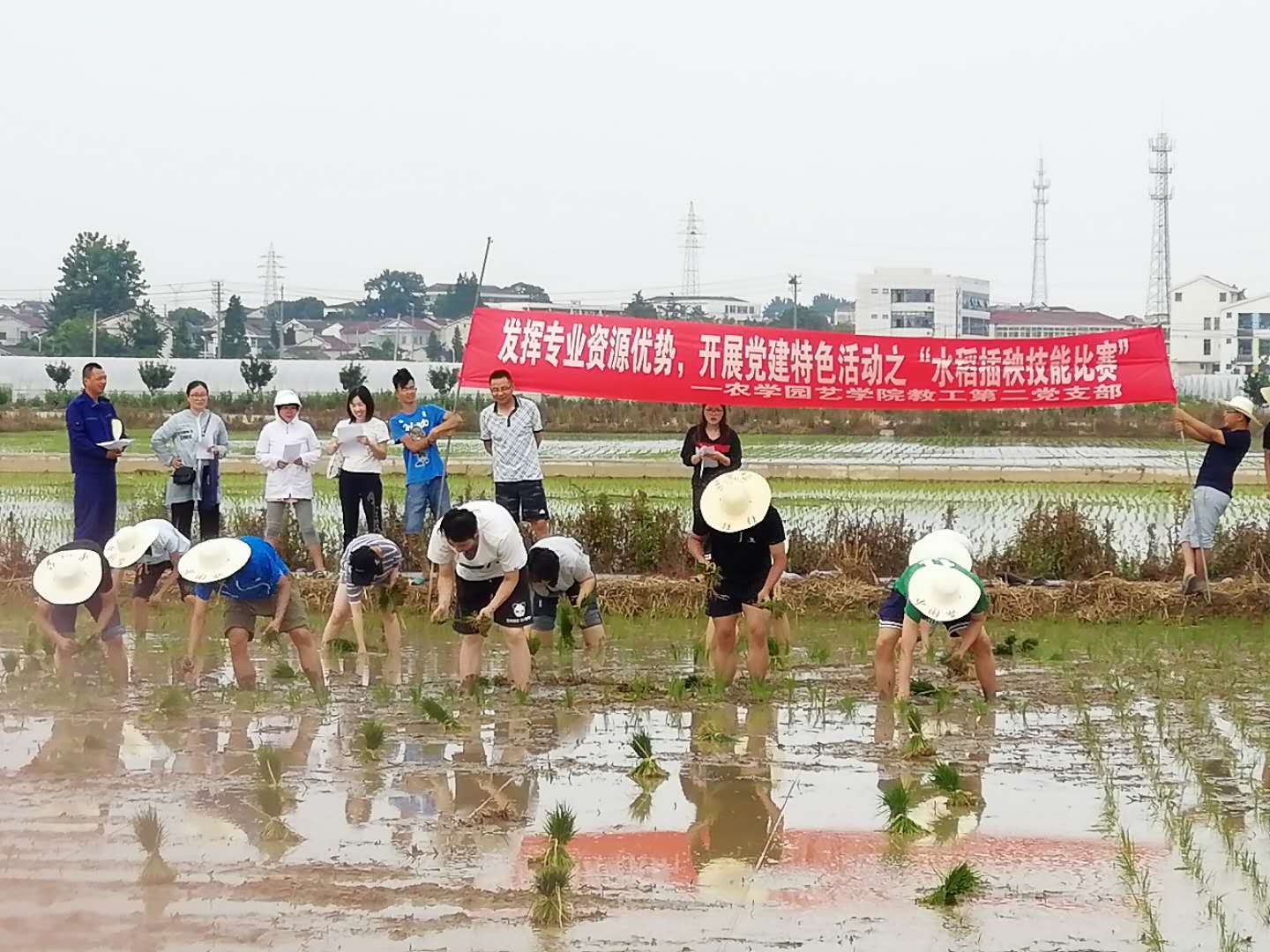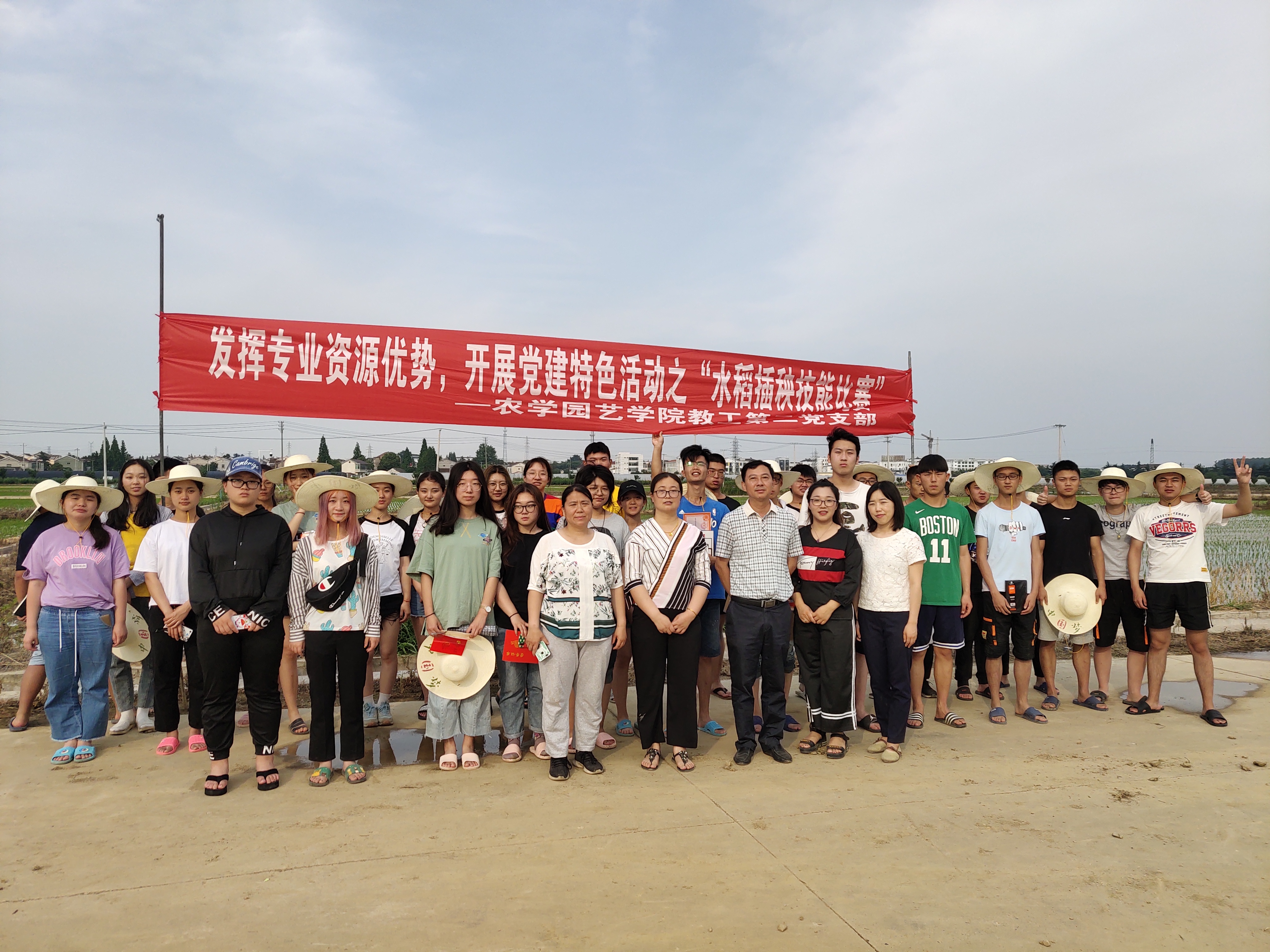 6月11日,农学园艺学院党总支组织教工第二党支部党员教师和部分积极分子、学生干部前往农博园开展“不忘初心、牢记使命”主题教育暨“水稻插秧技能比赛”。
