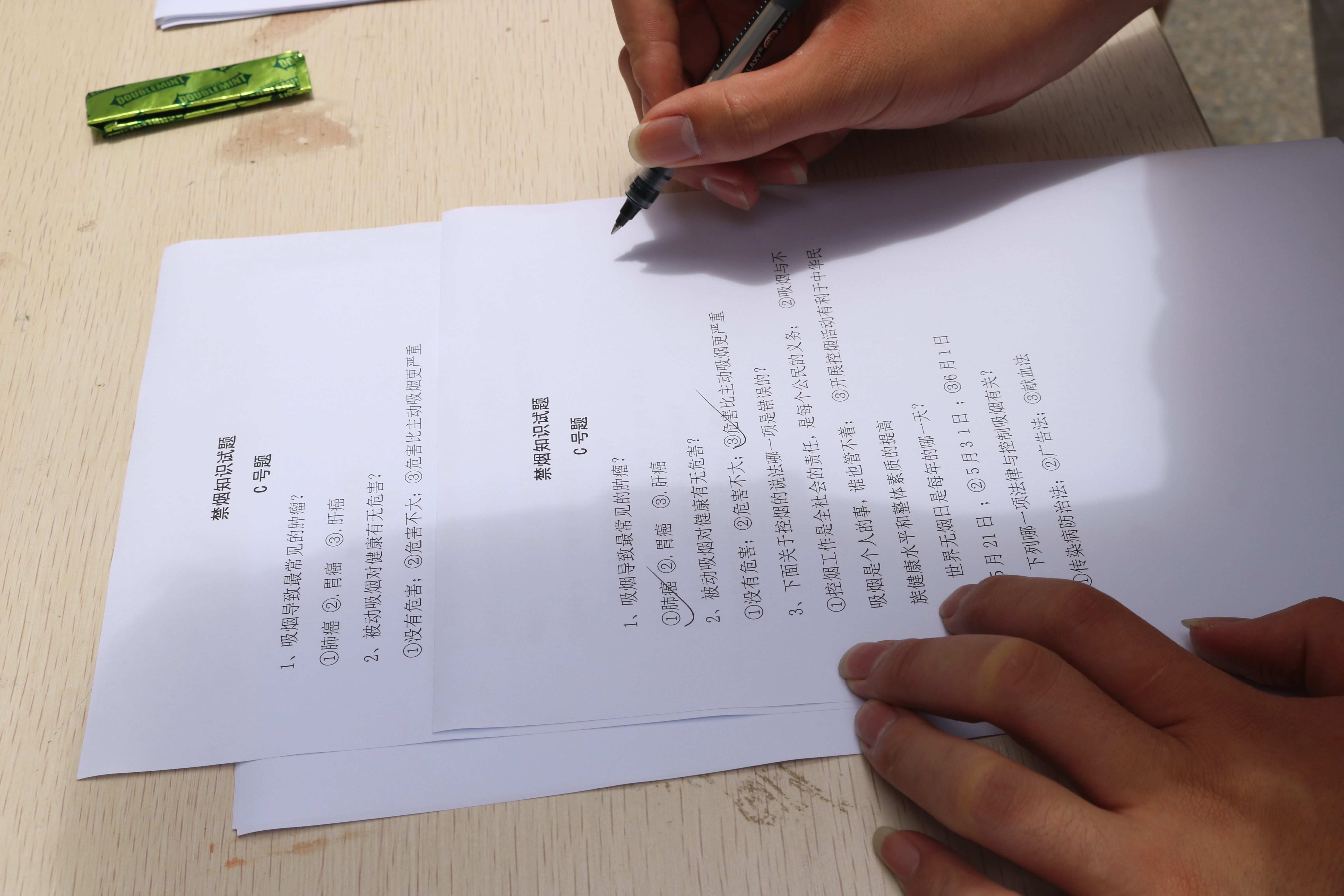 活动中,主办方通过横幅签名、便利贴表心愿、知识讲解等形式让过往同学了解烟草对青少年身心健康的危害,并现场进行科学小实验,用矿泉水瓶等模拟香烟对肺部的伤害,告诫同学们远离香烟。此外,同学们还设计了禁烟知识问答,通过答题换取口香糖的方式帮助同学们进一步了国家对于青少年禁止吸烟的相关规定。