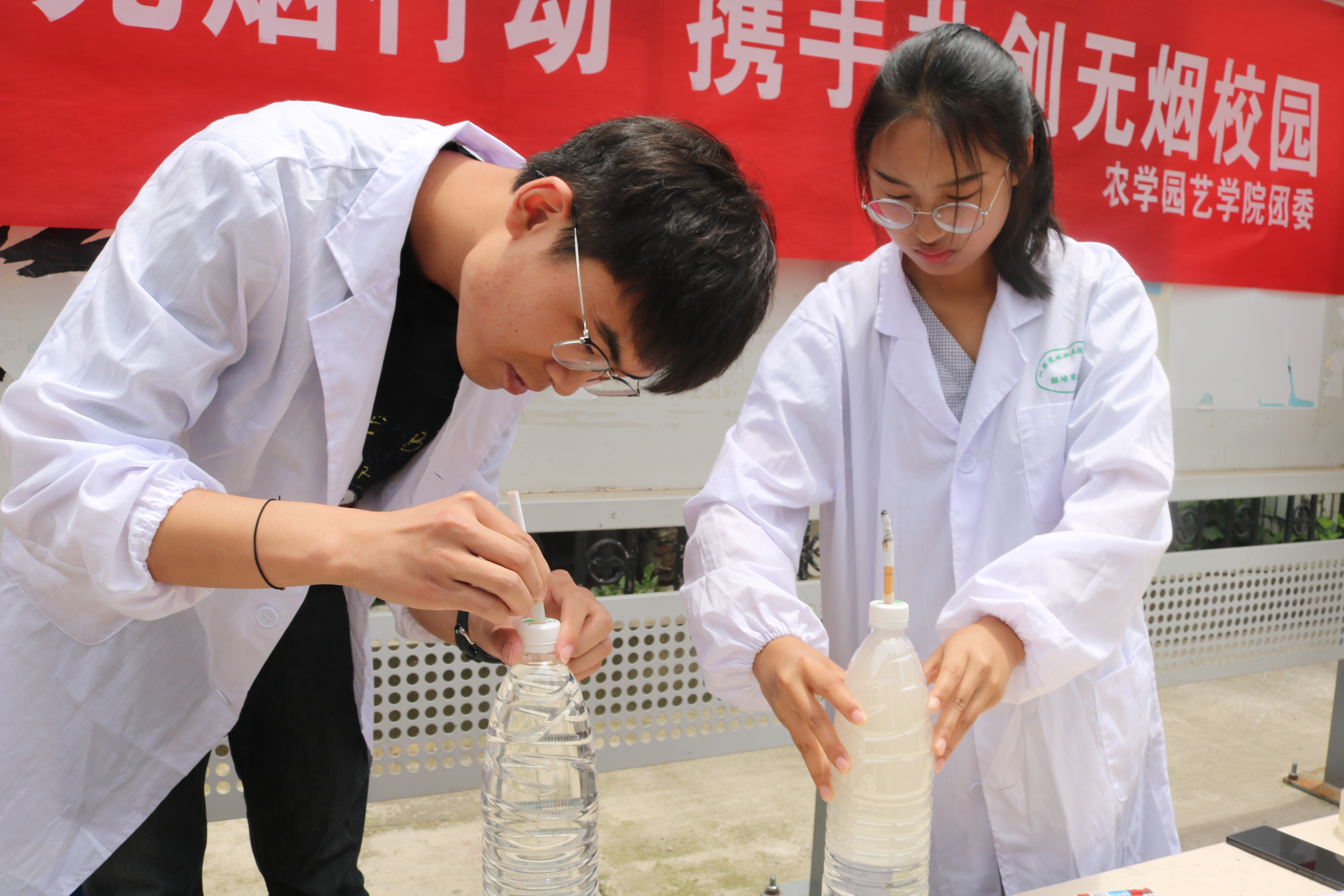 5月29日,农学园艺学院在食堂门口举办“人人参与无烟活动,携手创建无烟校园”世界无烟日宣传活动。