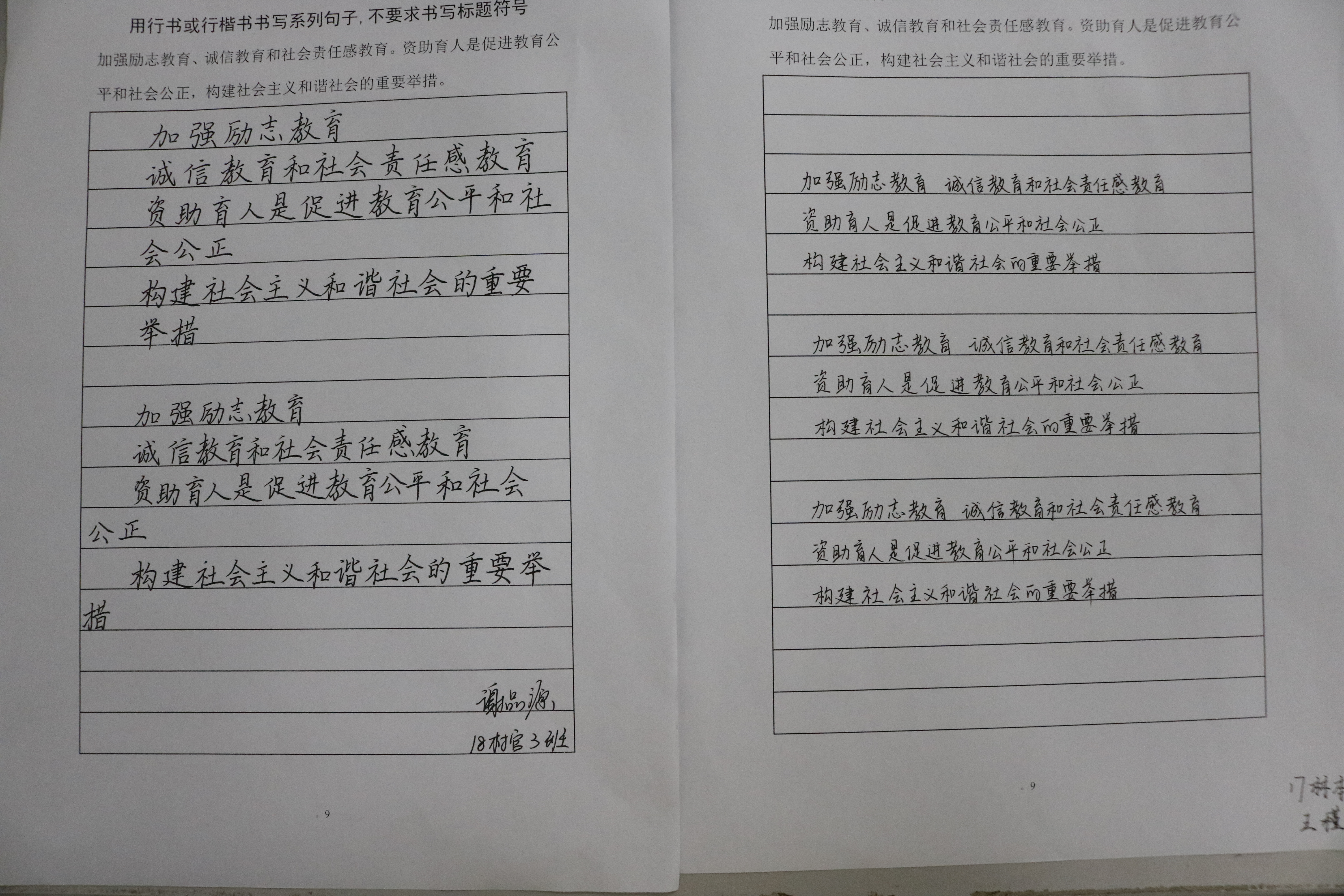 为了让同学们更深一步了解国家资助政策,让受资助的同学拥有感恩诚信之心。5月19日下午,农学园艺学院助学部在J1A-105举办“诚信于心、感恩于行”书法评比大赛。