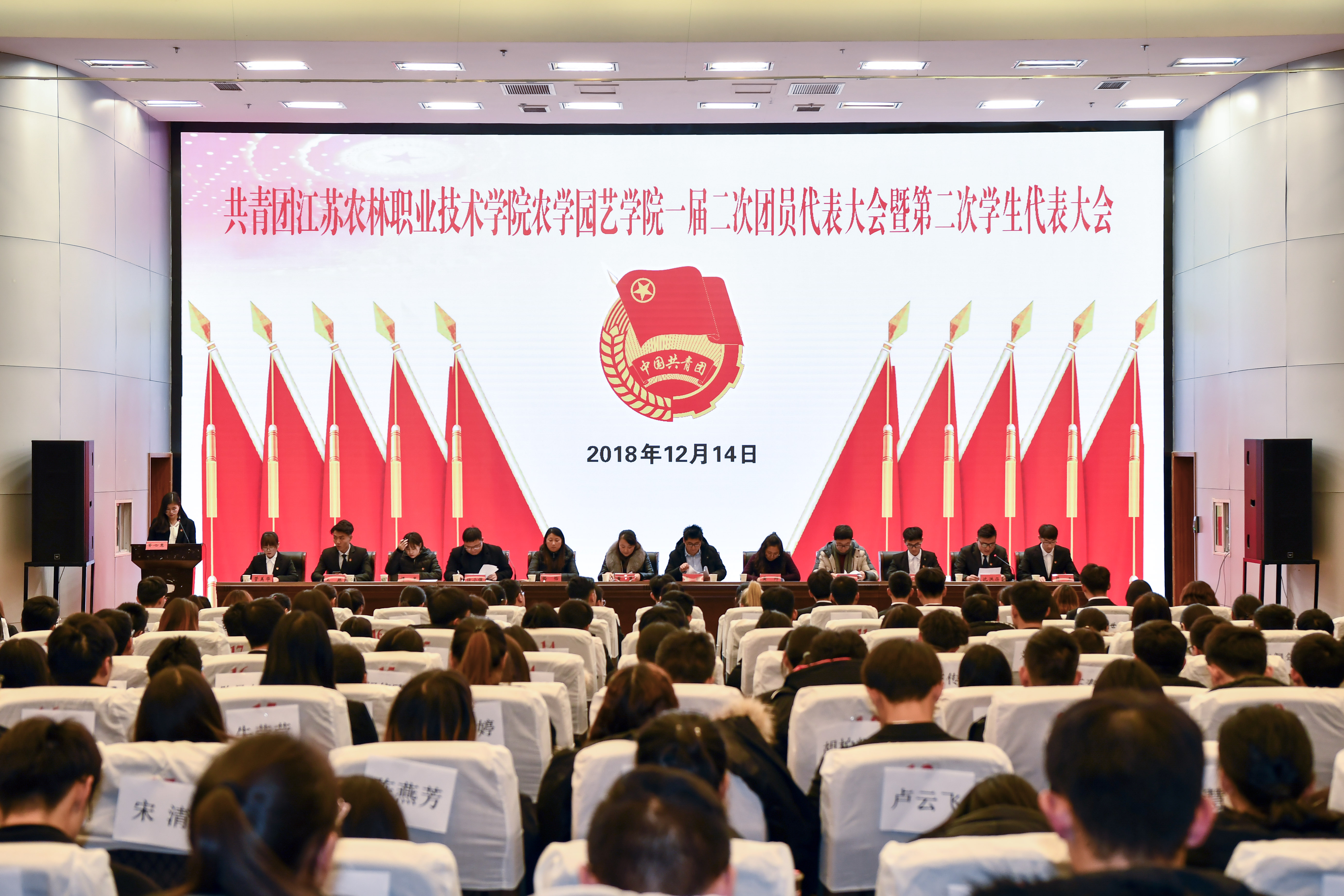 2018年12月14日晚,农学园艺学院一届二次团员代表大会暨第二次学生代表大会在图书馆报告厅隆重召开。农学园艺学院党总支副书记董慧老师、校团委兼职副书记崔明、学院辅导员老师、兄弟学院代表以及136名学生代表出席了会议。