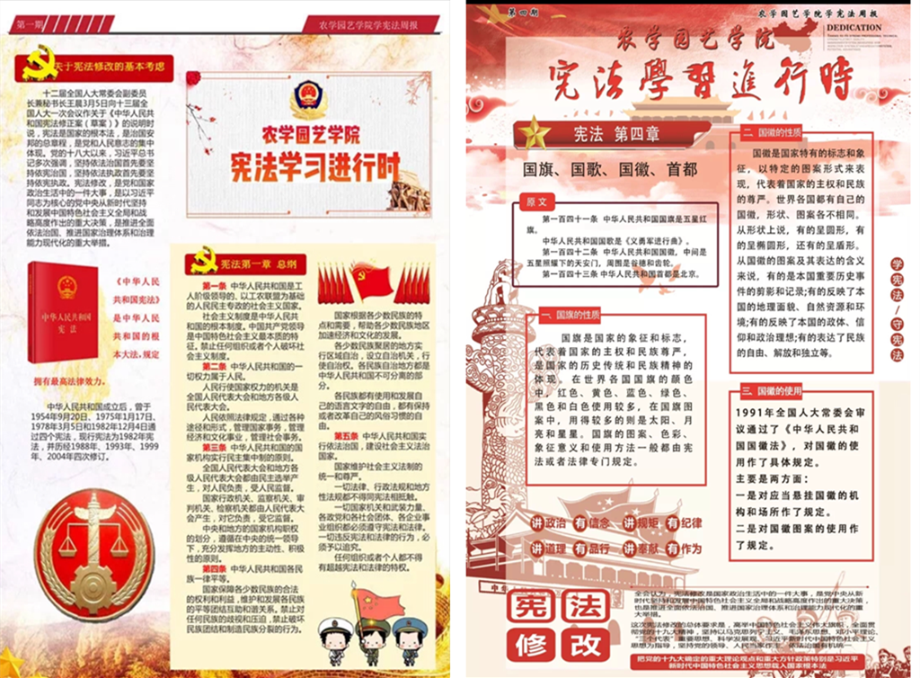 为进一步深入开展宪法宣传教育,强化宪法宣传教育效果,提升师生宪法意识,近日,农学园艺学院通过微信公众平台以电子小报的形式,开展“宪法学习进行时”宣传教育活动。