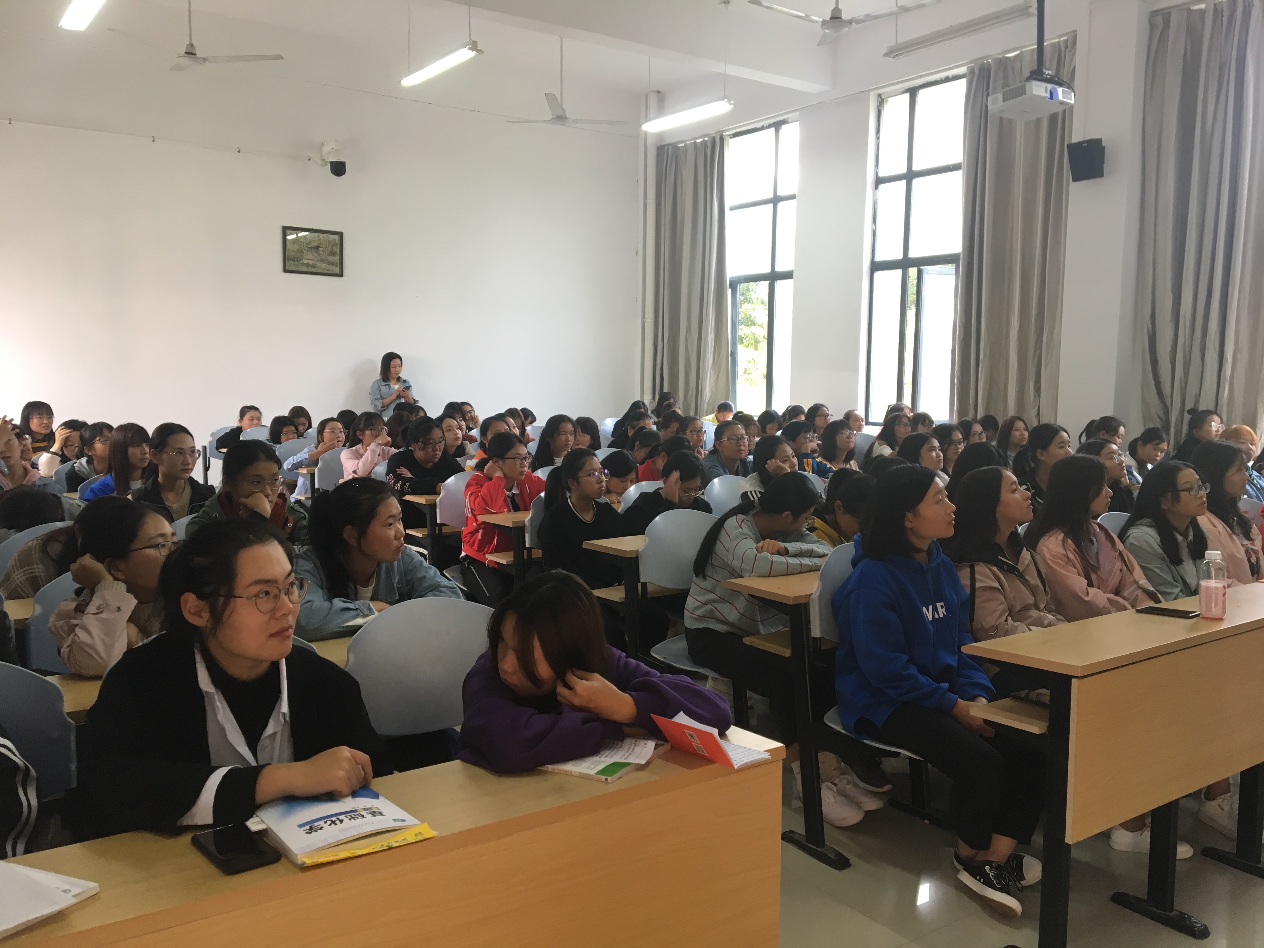 讲座中于蓉主任结合生活实例与理论知识,详细地讲授了女性生理保健、正确的避孕方式、流产的危害等医学健康知识,并与同学们进行了良好的互动。于主任的讲授深入浅出,专业的阐述中不失幽默生动,不时博得在座同学的阵阵掌声。