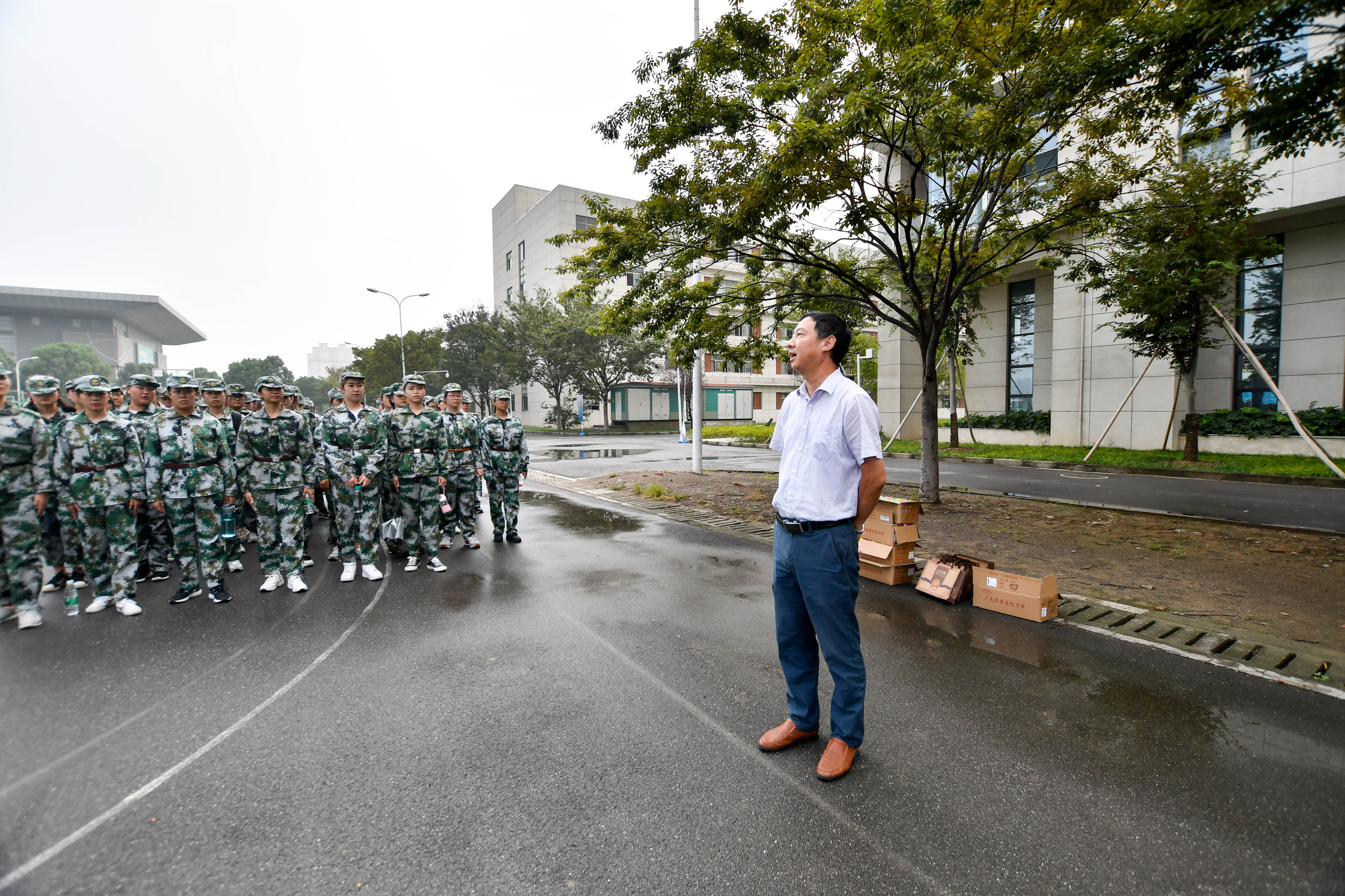 桂香万里月当空,中秋校园情意浓,2018年9月21日下午,在中秋佳节来临之际,农学园艺学院党总支副书记杨宝林、副书记董慧及学工办全体辅导员一行8人带着月饼分别前往学院本部和茅山校区军训场地,慰问正在紧张军训的教官与2018级新生。