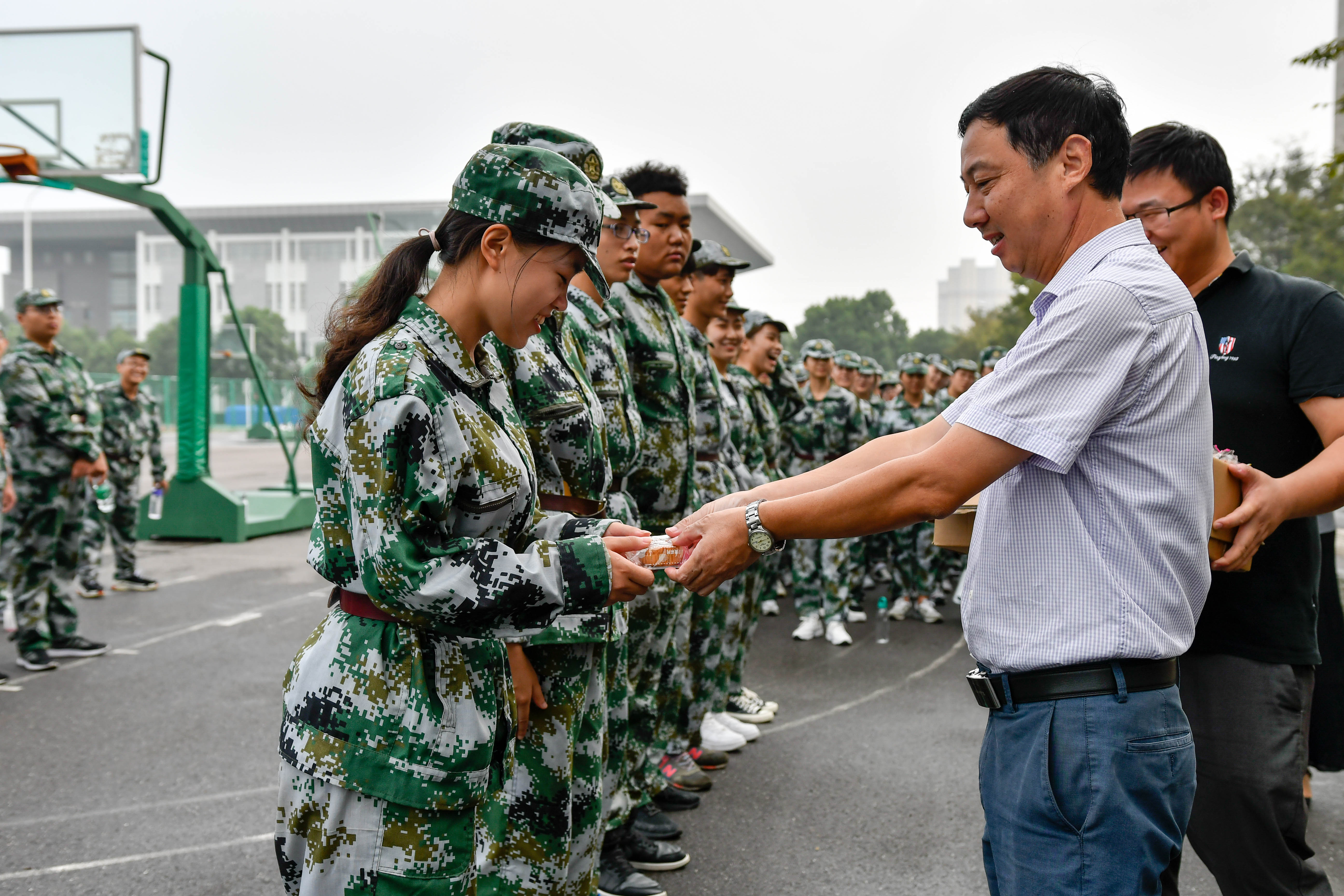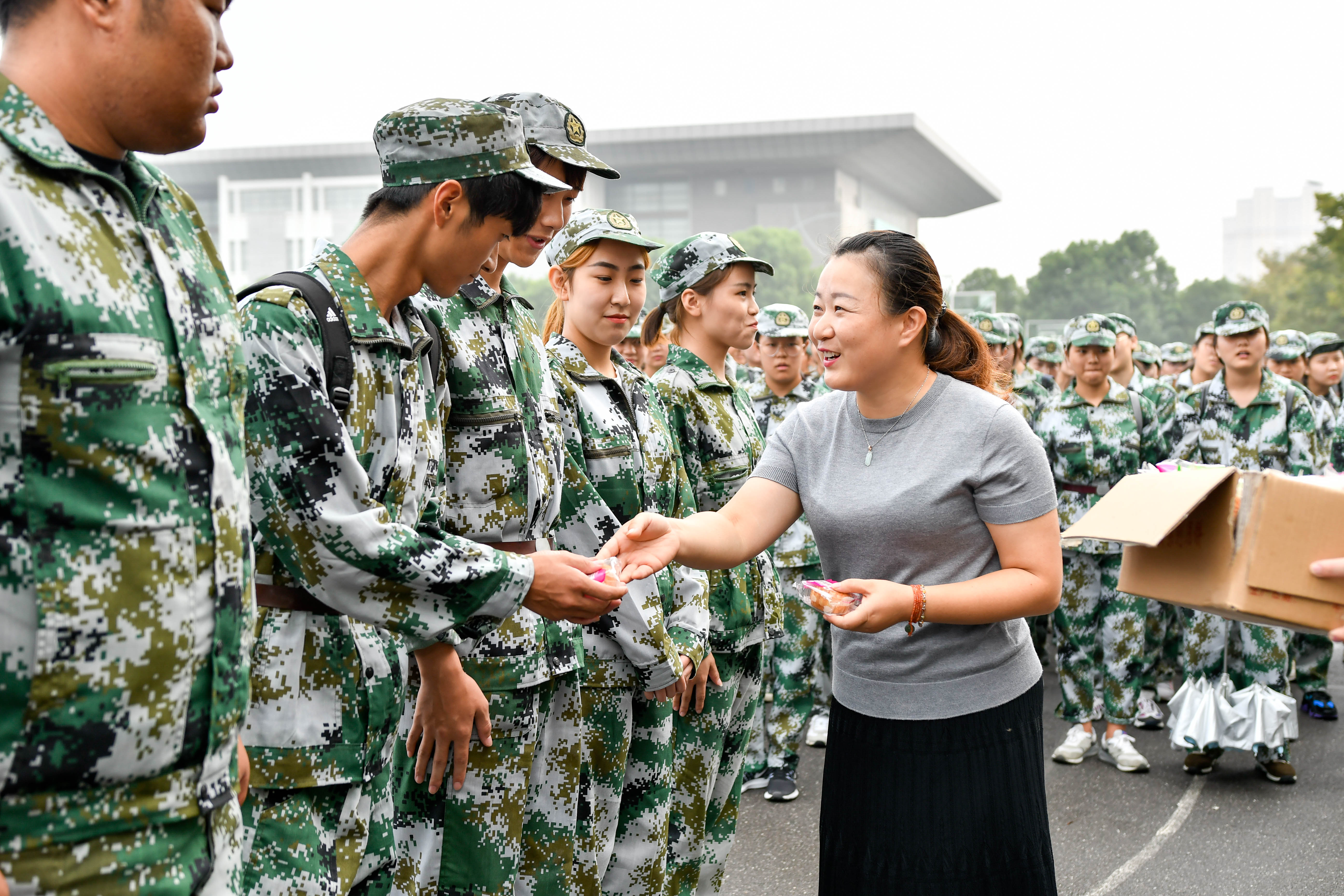 慰问现场,杨书记代表农学园艺学院对教官及全体新生致以中秋祝福,并对同学们不畏艰苦,坚持军训的态度表示了充分的肯定。董书记希望同学们能把军训中自立自强,顽强拼搏的精神发扬到今后的学习和生活中去,提高自身综合素质。接着,辅导员老师给全体教官和新生分发了月饼,向大家带去了中秋祝福。新生们纷纷表示,这样的慰问很贴心,让他们感受到了家的温暖。