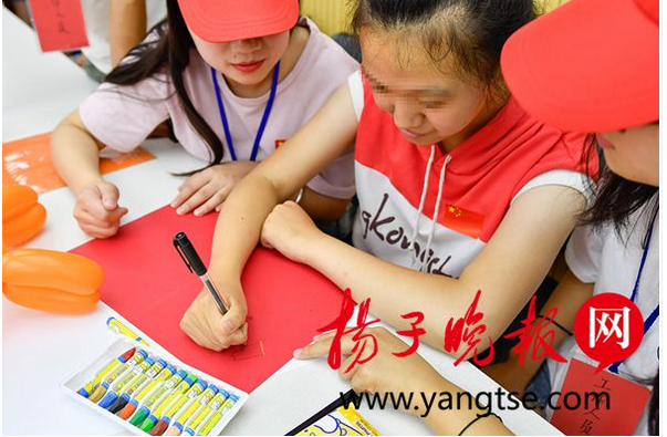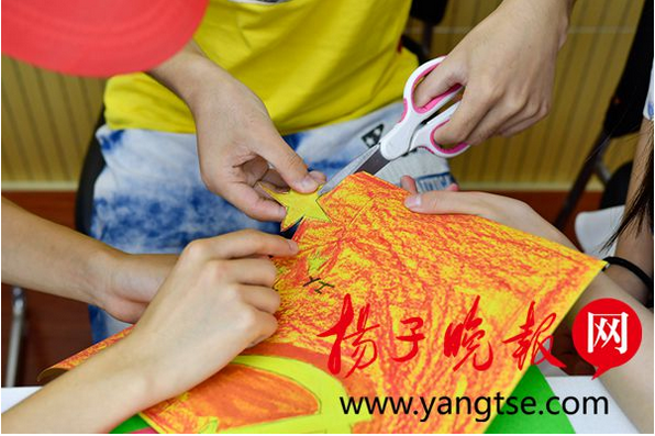 主题活动中,志愿者结合PPT向孩子们绘声绘色地讲解了一些简单的党的知识,以故事的形式让他们了解相关的历史事件与名人事迹,孩子们跟着志愿者的思路,认识了地图,了解了中国幅员之辽阔,地大之物博;在志愿者们的细心帮助下,孩子们画出星星、镰刀、锤子的图案,并剪切粘贴在红色背景纸上制作成党旗国旗;志愿者还准备了《义勇军进行曲》MV,教孩子们合唱国歌。通过一系列环节,让孩子们树立爱国信念,深化爱国之情。活动最后,孩子们挥舞着国旗,和志愿者们一起艰难却又坚定地齐声祝愿:中国共产党生日快乐!