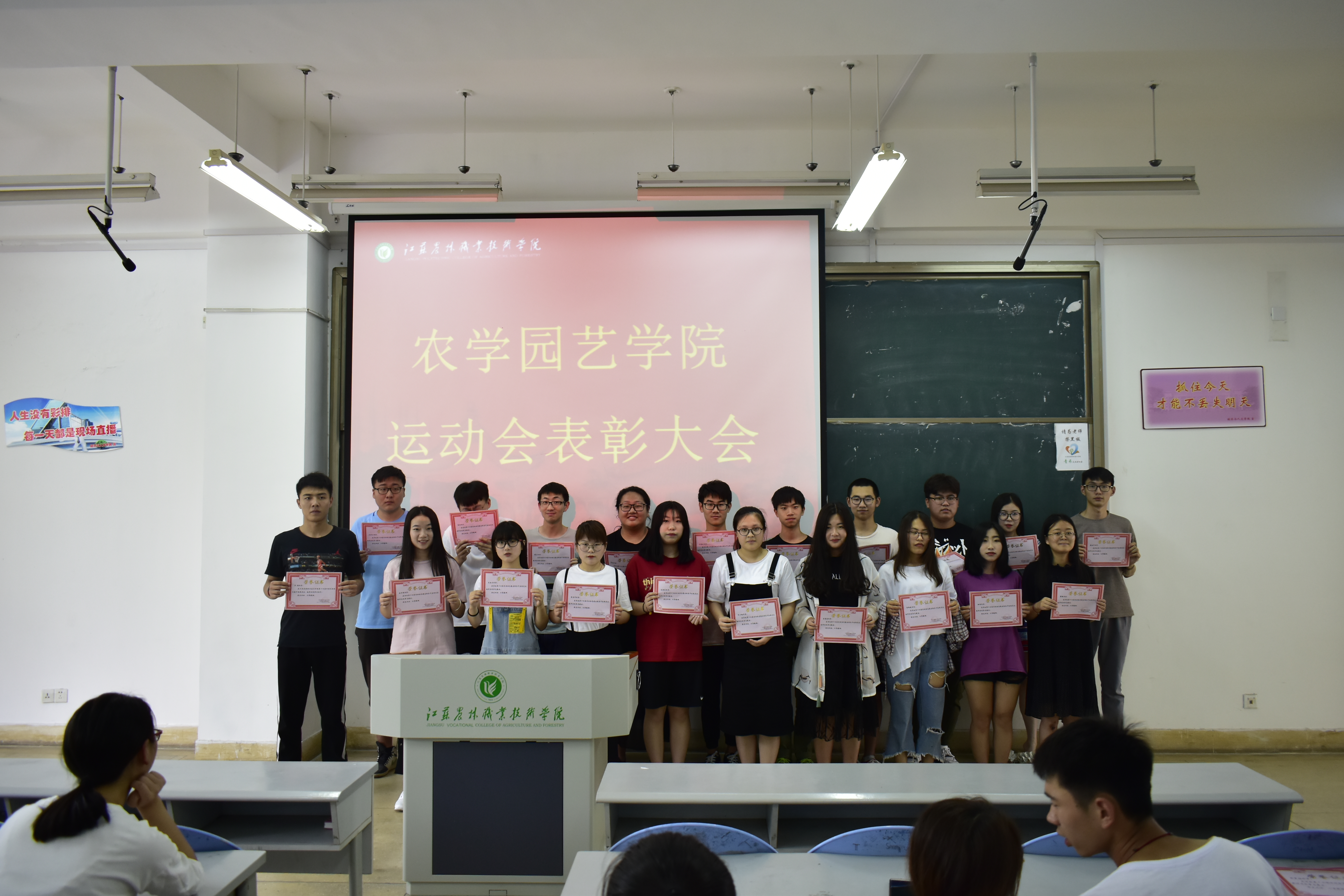为鼓励同学们敢于拼搏的运动精神,同时对在学院第十四届运动会中努力付出的运动员和志愿者给予表彰。2018年6月20日,农学园艺学院在教学楼j1-a205召开了运动员表彰大会,党总支副书记董慧老师、各辅导员和全体运动员、志愿者参加了本次会议。