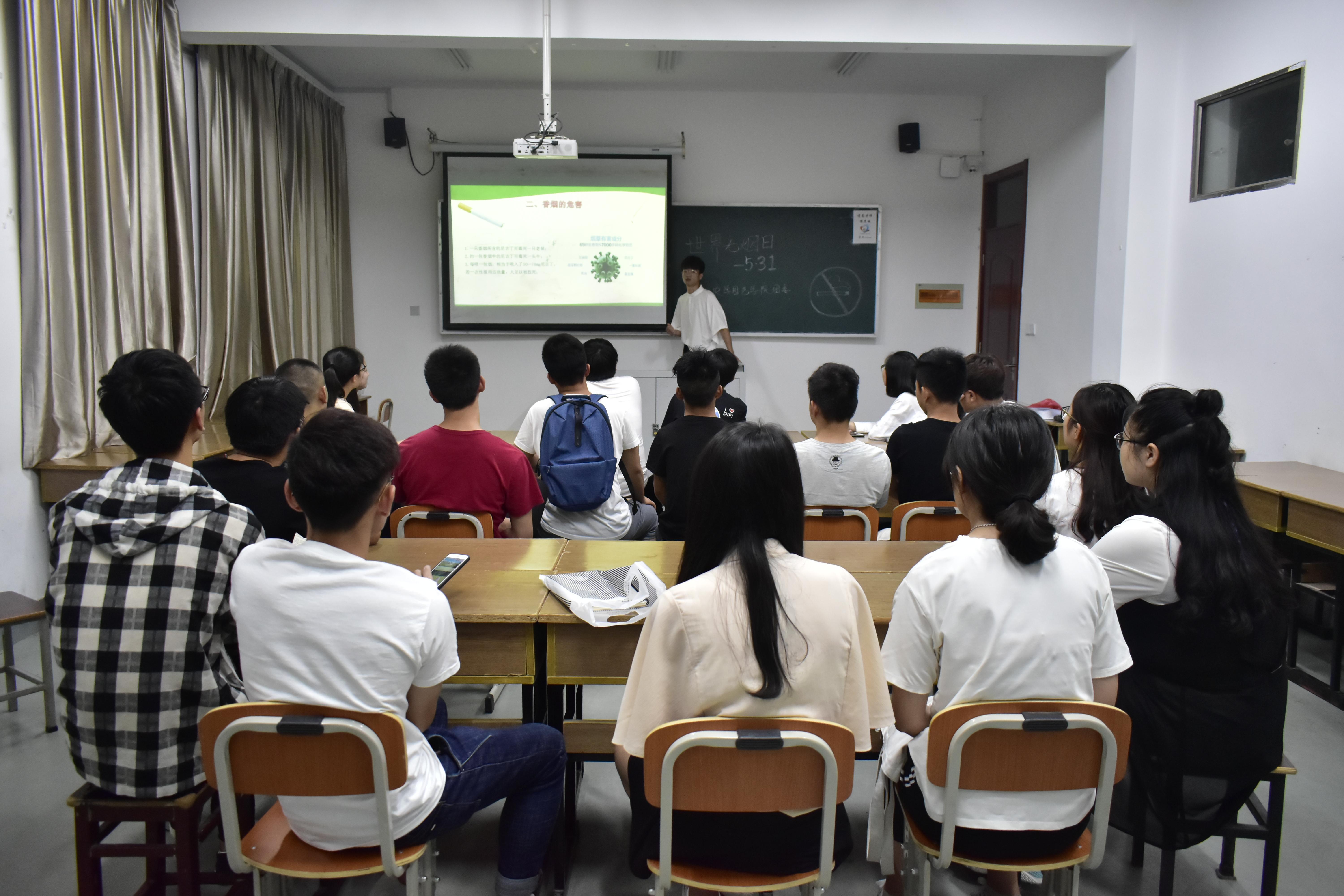 为了丰富大学生的课余生活,加大对控制吸烟问题的宣传力度,使更多的同学远离香烟,拥有健康的身体,5月30日,农学园艺学院在文科楼208开展了以“让校园有言无烟,让未来有爱无害”为主题的世界无烟日活动,17级学生宿舍舍长参加了活动。