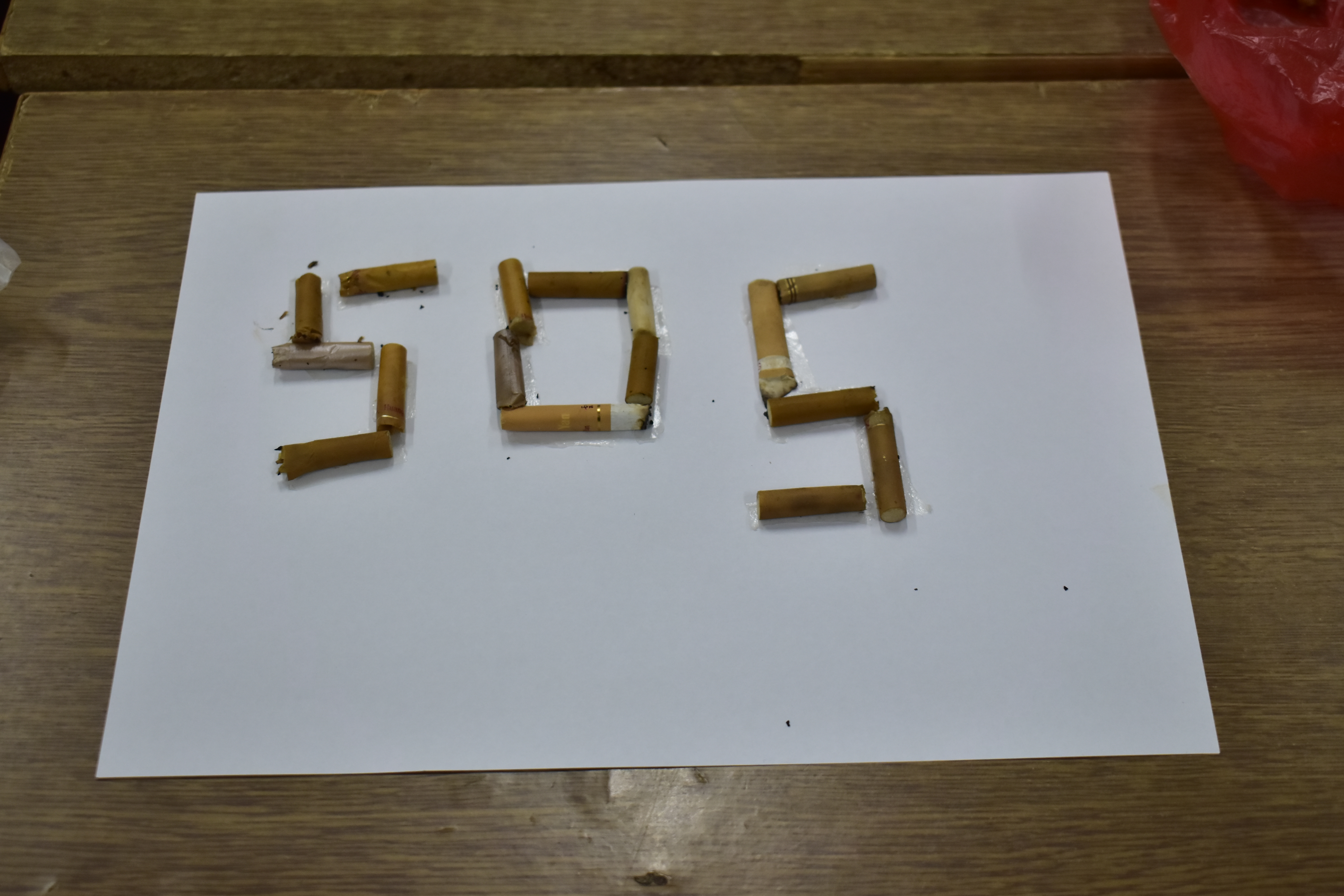 活动共分三个环节,第一环节“戒烟禁烟我参与”,主持人结合PPT和视频,向同学们介绍了吸烟对人体的巨大危害,让大家树立起远离香烟的意识。随后的“戒烟拼图DIY”环节中,同学们用收集的烟头,拼接出形态各样的禁烟标志,表达远离香烟的决心。“漫”见吸烟危害环节,同学们每人挑选了一幅关于“吸烟有害健康”的黑白漫画,自由搭配色彩,现场涂鸦,表达了对世界无烟的期望。