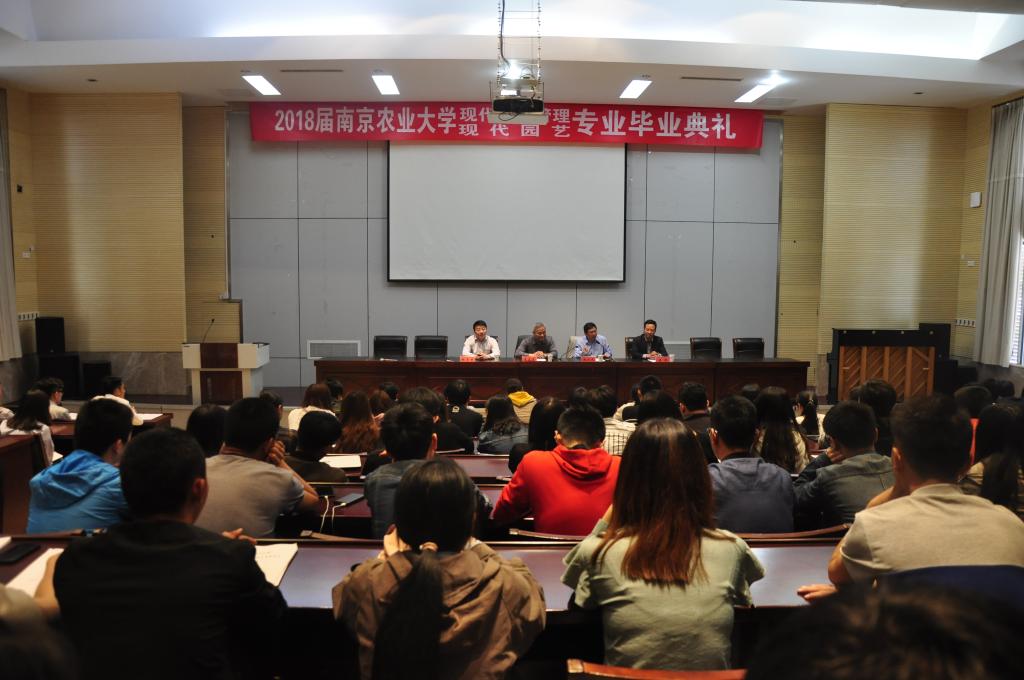 4月20日下午,2018年南京农业大学(江苏农业职业技术学院)现代园艺专业和现代农业管理专业“专接本”毕业典礼在江苏农业职业技术学院研发楼报告厅隆重举行。学校副校长周兴元教授、南京农业大学继续教育学院院长李友生教授、学校继续教育学院院长梁凯、农学园艺学院院长颜志明及2018届现代园艺专业和现代农业管理专业“专接本”全体毕业生参加了典礼。典礼由继续教育学院梁凯院长主持。