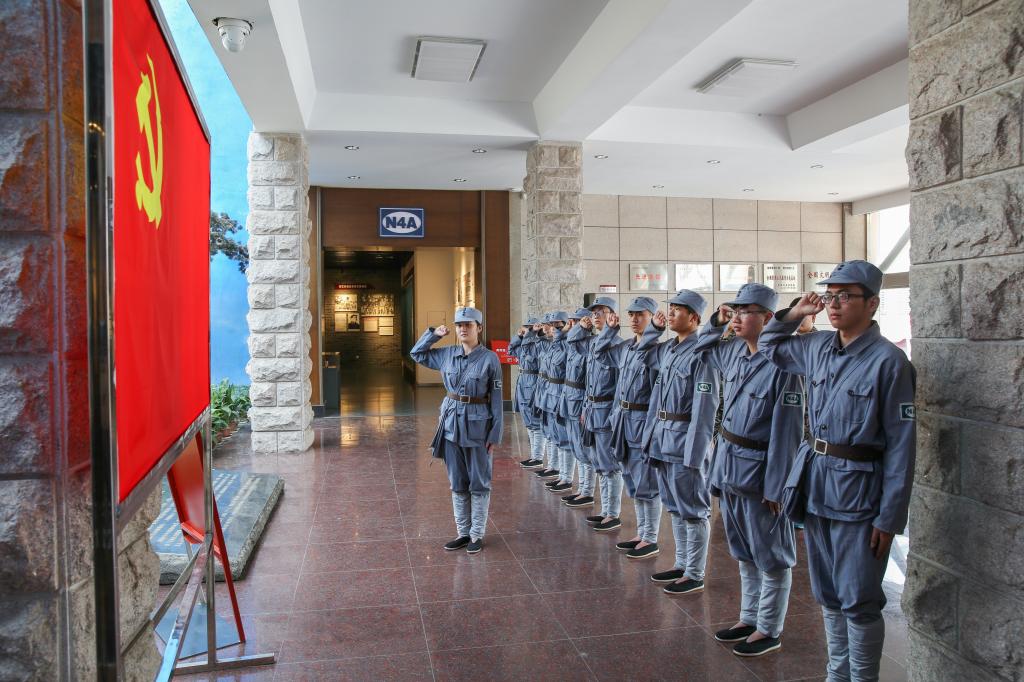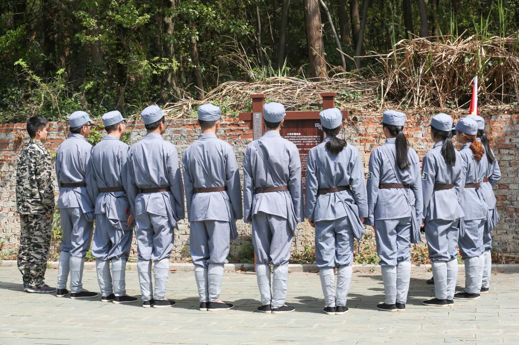 活动中,同学们穿上铁军服,参观了新四军纪念馆,在纪念馆内,大家重温入党誓词,坚定理想信念,牢记党的宗旨。随后大家来到苏南抗战胜利纪念碑前,鲜花敬礼,脱帽默哀,缅怀革命先烈。大家还行走了一段东进栈道,身临其境的感受了当年老一辈革命家与日伪斗争的复杂环境。并参观了小号手牺牲,切身感受了新四军将士为了祖国和人民的利益,不怕苦,不怕累,不怕牺牲的英雄气概。