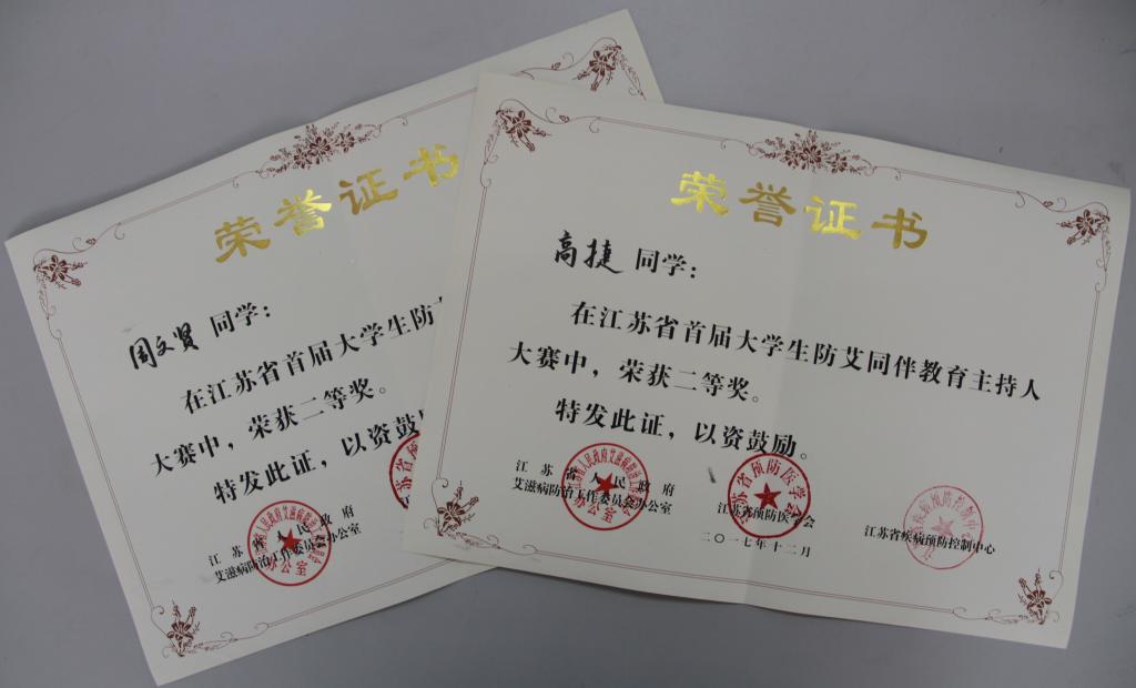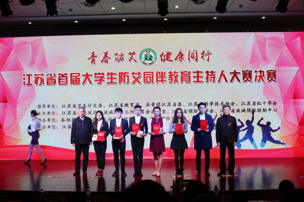 12月1日,由江苏省人民政府艾滋病防治工作委员会办公室,江苏省预防医学会,江苏省疾病预防控制中心主办的江苏省首届大学生防艾同伴教育主持人大赛决赛在江苏理工学院举行。我校高捷、周文贤两名学生凭借情景扮演的案例分析及高人气的微信投票,在全省110所高校的129个社团中脱颖而出,以第二名的成绩进入决赛,并且在8支决赛团队中赢得了二等奖的好成绩。我校荣获优秀组织奖,农学园艺学院董慧老师荣获优秀指导奖。