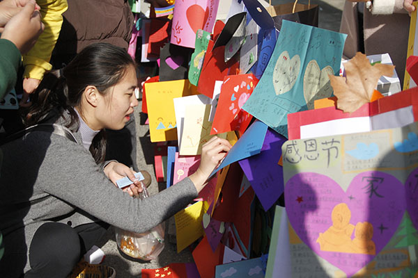农学园艺学院于11月23日中午在食堂前举办“馨心卡片,暖溢农林”感恩贺卡展活动。
