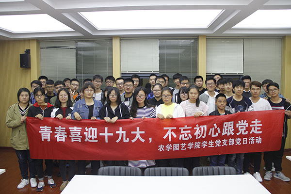 为深入贯彻落实习近平总书记系列重要讲话精神,引导广大青年更加紧密地团结在以习近平同志为核心的党中央周围,以崭新面貌和精神状态,迎接党的十九大胜利召开,2017年10月16日农学园艺学院学生党支部组织开展了“青春喜迎十九大,不忘初心跟党走”党日活动。