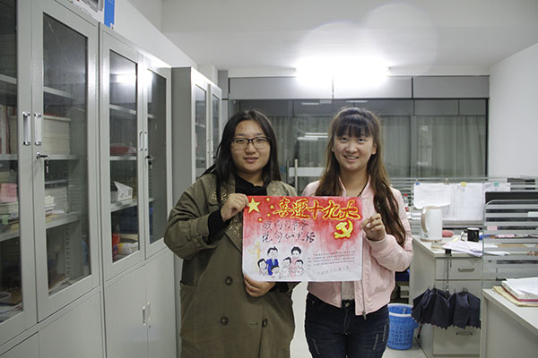 本次活动由“观影片筑根基”、“传承经典,书写时代热点”、“萌萌举铭牌,红心永向党”三个部分组成。同学们通过观看《还看今朝—江苏篇》,感受近几年来江苏地区的变化与发展;通过书写十九大热点词汇,表达了对十九大召开的期盼之情;“萌萌举铭牌,红心永向党”集体感言活动,表达了对学校未来发展美好的憧憬,以及对十九大即将召开深深的祝福。