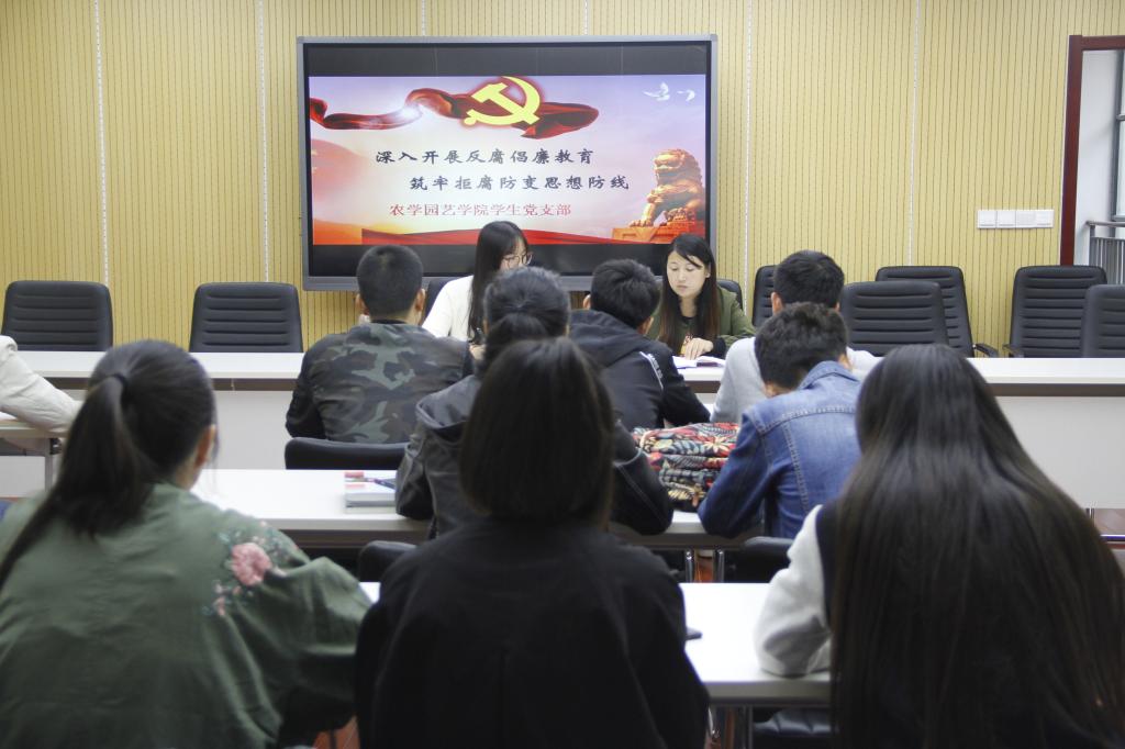 为了迎接“十九大”的顺利召开和学院“两学一做”常态化制度化实施方案的要求,深入开展反腐倡廉教育,农学园艺学院学生党支部于2017年10月12日中午,在研发楼会议室召开了“党中央治国理政新理念新思想新战略”专题讨论会暨反腐倡廉警示教育活动。