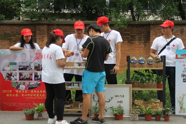 2017年7月13日,江苏农林职业技术学院农学园艺系开展“博爱青春”暑期社会实践之“接力微公益,我们在行动”户外宣传义卖活动。20名志愿者们来到社区街道,进行公益宣传义卖活动。