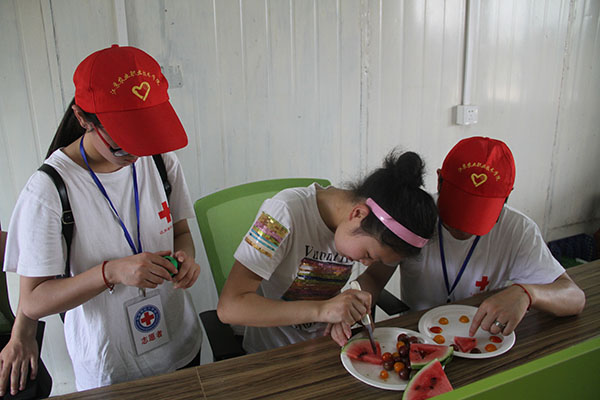 志愿者首先带领孩子们来到了新禾果园的番茄园,看着挂满果园的各色小番茄,孩子们迫不及待的拉着志愿者一起采摘番茄,一只只小篮子,装满开心与快乐;然后大家又来参观了草莓苗培育基地,孩子们被挂着果的草莓深深的吸引;接着孩子们又参观了现代农具机械,孩子们摸摸转转,好奇宝宝爱学习呢;随后大家又到生态大道,在这里,志愿者们和他们玩起了寻宝游戏,天然的绿色氧吧配着礼物惊喜,笑容满园区;最后一站大家来到了新禾葡萄园,蔡善亚老师为孩子们们讲解了一些简单的葡萄小知识,孩子们还做起了水果拼盘。这一天充满了开心和惊喜,志愿者们了解到今天是刘思怡的生日,大家悄悄地为刘思怡准备了生日蛋糕和礼物,用温馨的生日歌和暖暖的爱心,陪她一起过了个快乐的生日。