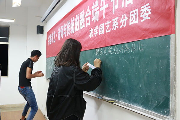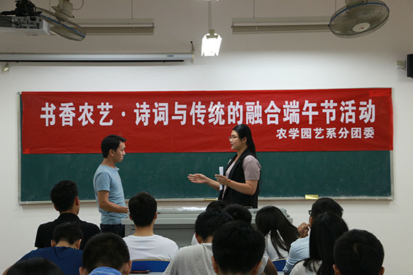 5月25日,农学园艺系分团委在文科楼开展了“书香农艺·诗词与传统的融合”端午节特别活动,同学们欢聚一堂,共叙佳节。