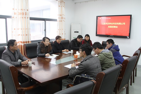 2017年3月31日下午,江苏丰庆种业科技有限公司朱洪文董事长一行2人来农学园艺系开展专场招聘会。农学园艺系党总支副书记董慧、学工办相关老师和农园学专业部分学生参加了此次招聘会。