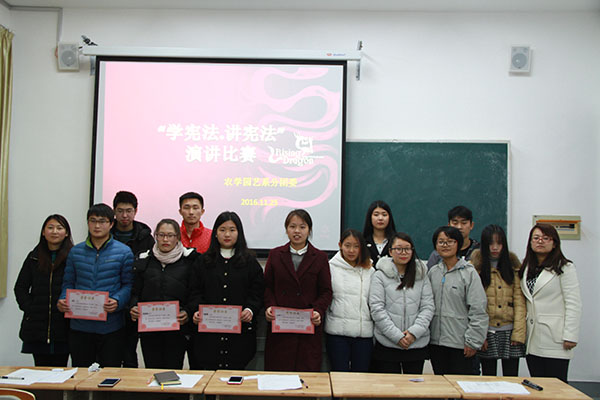 近日,农学园艺系分团委开展了“学宪法、讲宪法”主题演讲比赛,系部12名同学参加了比赛。