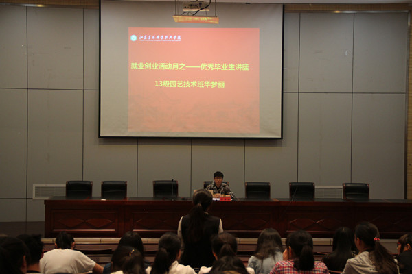 2016年5月5日,围绕大学生创业与就业主题,农学园艺系在研发楼报告厅开展优秀毕业生讲座。此次讲座的主讲人为农学园艺系13园艺技术班华梦丽同学,系部100多名学生倾听了讲座。