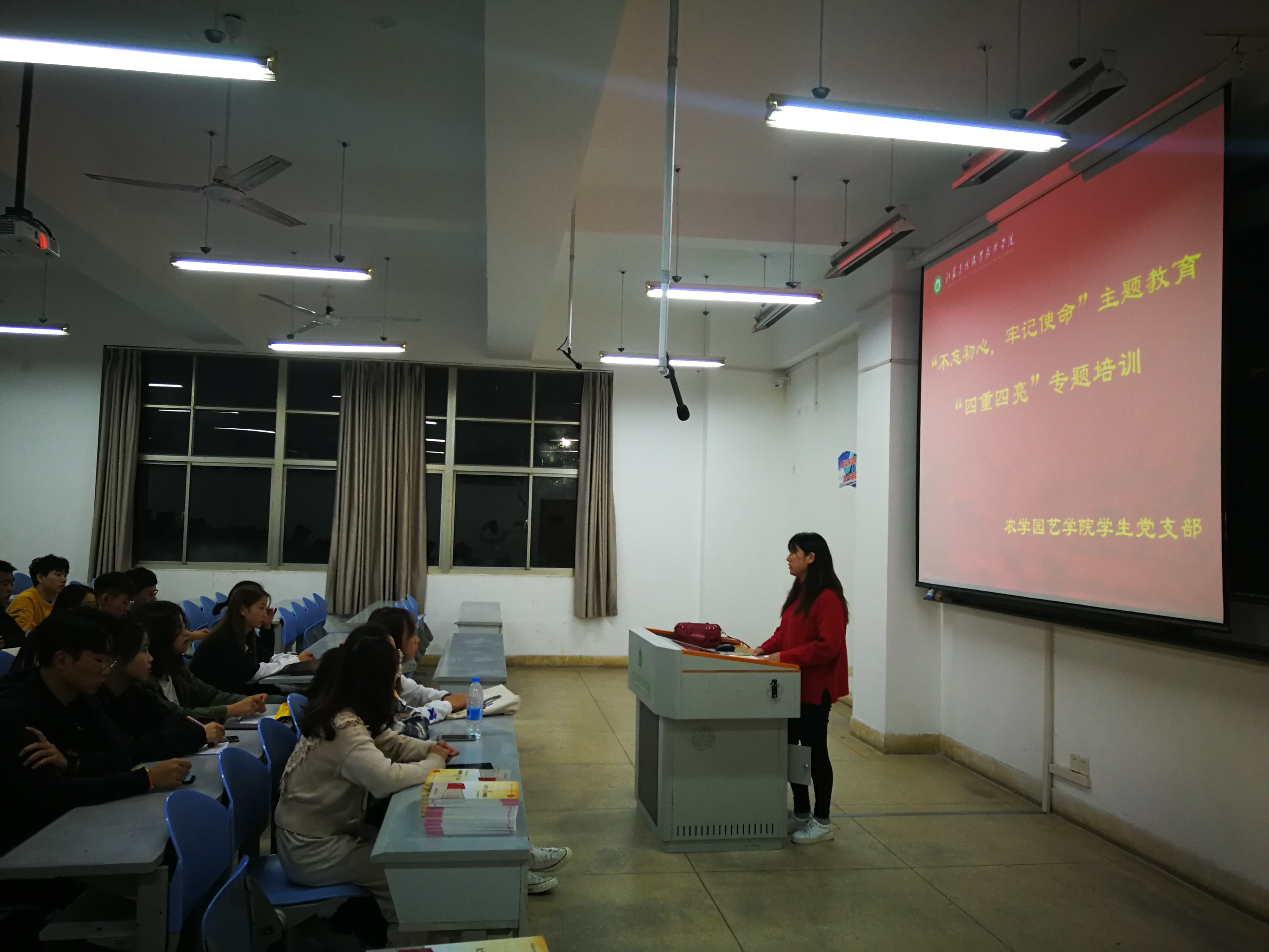 10月22日,农学园艺学院学生党支部在J1A205举办“不忘初心、牢记使命”主题教育——“四重四亮”专题培训。学生支部党员和部分积极分子参加了培训。