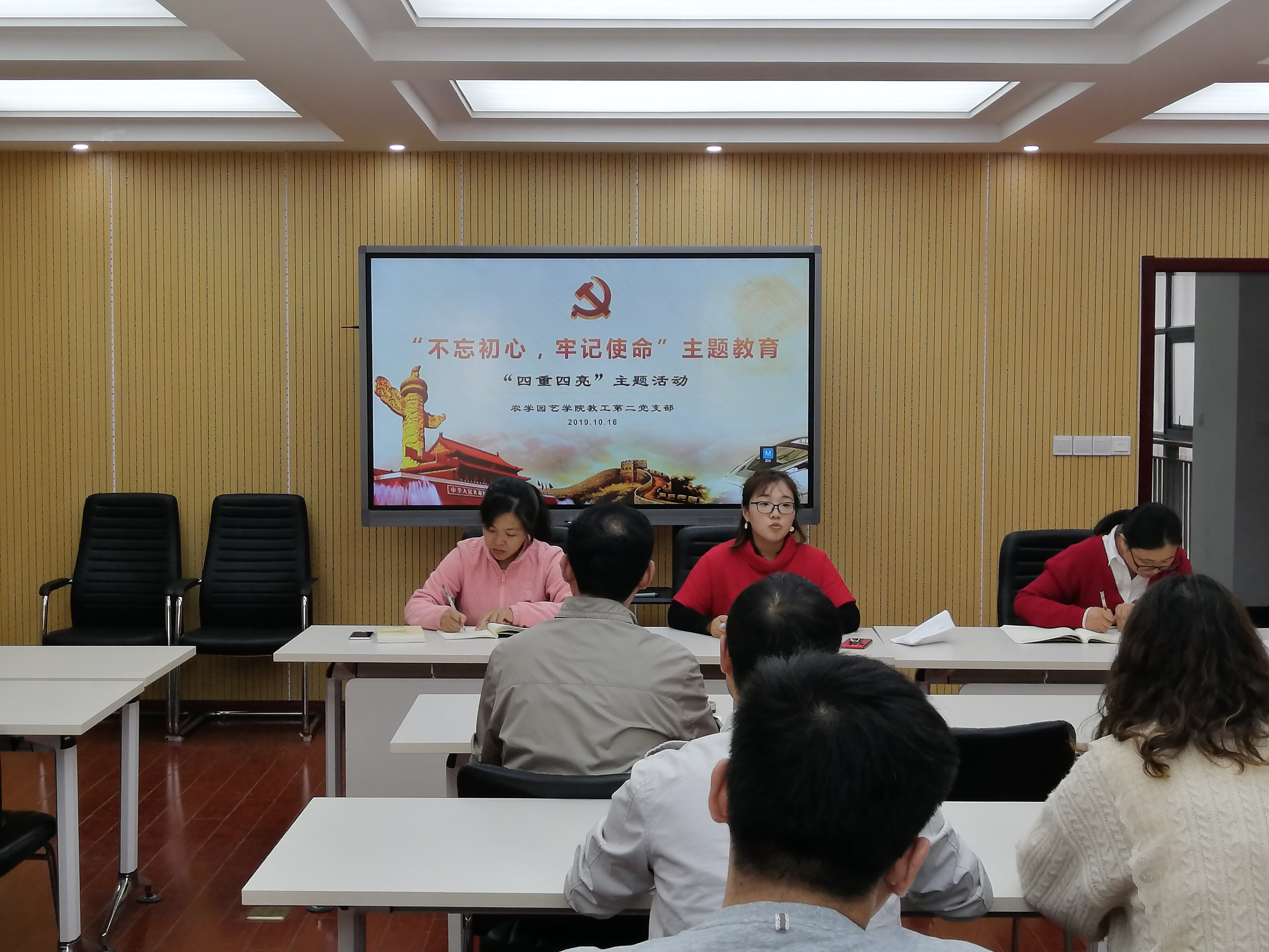 根据学校党委和农学园艺学院党总支关于开展“不忘初心、牢记使命”主题教育各项部署,按照“不忘初心、牢记使命”主题教育学习方案和工作安排,农学园艺学院教工第二党支部于10月16日下午14:30在研发楼大会议室开展“四重四亮”主题党日活动。活动由教工第二党支部书记赵艳岭主持,第二支部全体党员参加了本次活动。