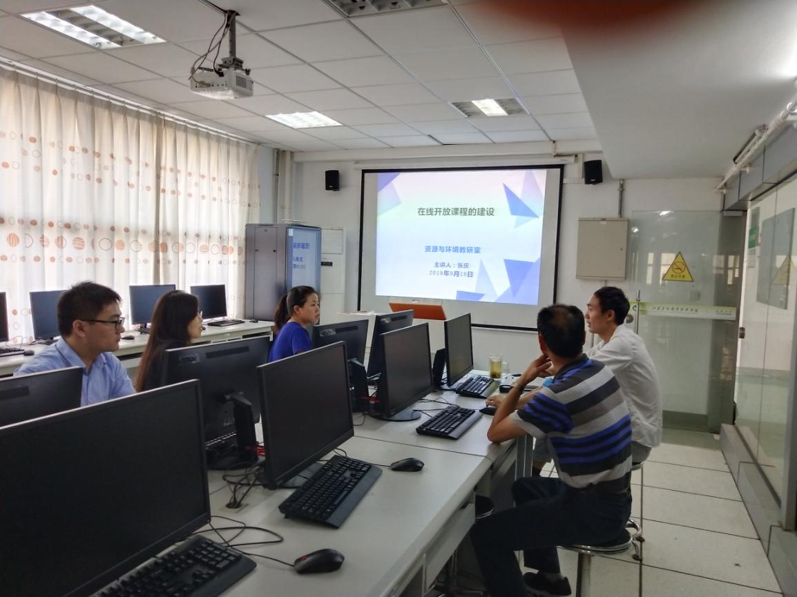 解振强副院长指出了推进在线开放课程建设对提升教师信息化教学能力的重要意义,总结了目前我院在线开放课程建设的整体情况,并希望各在线开放课程团队按时间节点做好在线开放课程建设及推广应用工作。随后资环教研室主任根据在线开放课程的建设要求,重点组织与会人员就如何建课程和如何进行线上学习进行了研讨。张庆老师现场演示了课程的建设步骤和使用环节的操作并就注意事项和大家进行了交流讨论。