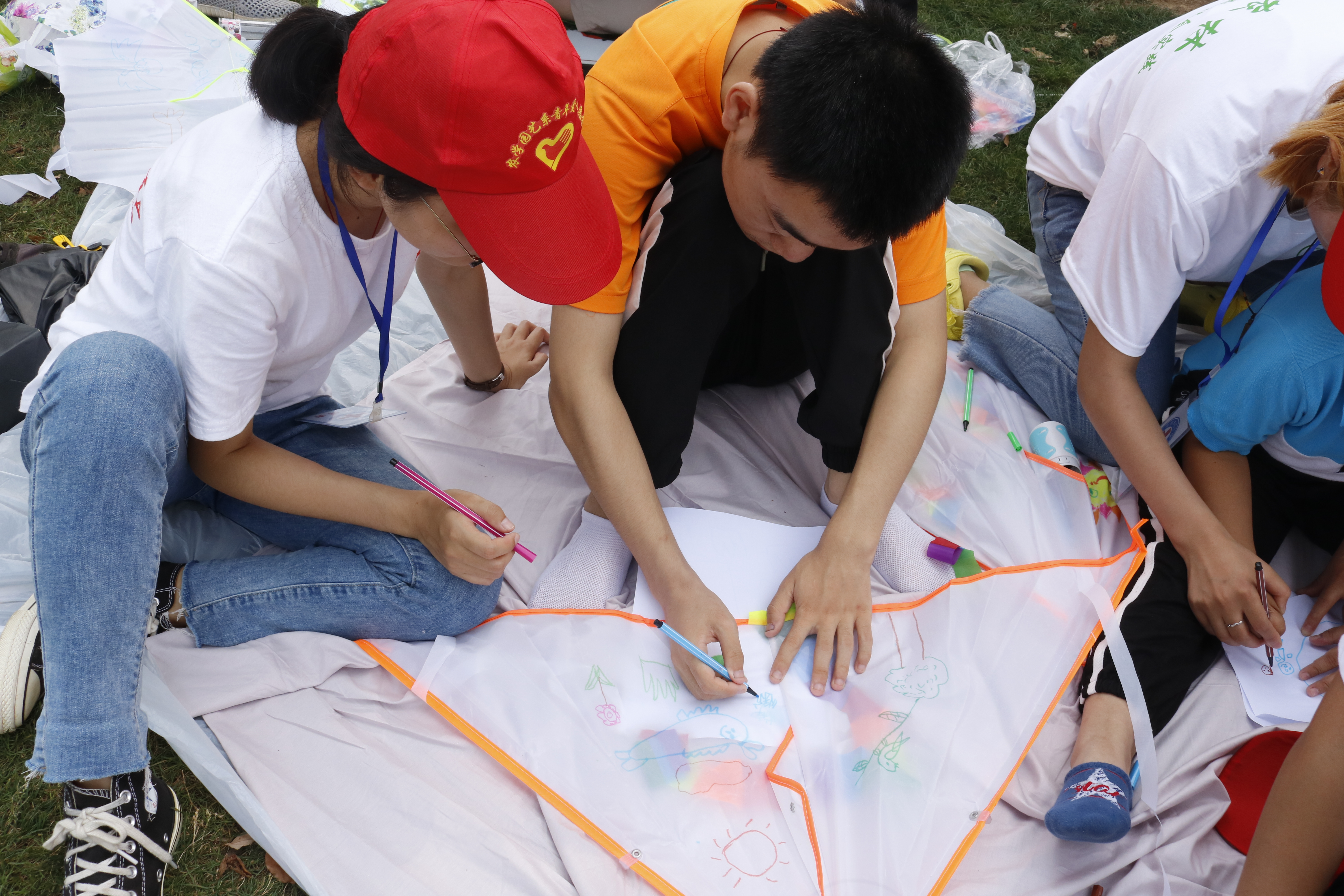 活动中,志愿者们为孩子们准备了空白的风筝、画笔,大家一起在风筝上画画,卡通人物、树木花朵、动物风景,各种各样的元素在志愿者和孩子们的笔下被画了出来,虽然画面非常稚嫩,但也创意十足、风格迥异。绘画完成后,孩子们在志愿者的引导下把风筝放飞上天,看着风筝越飞越高,孩子们不约而同地微笑着、欢呼着,把欢乐全都写在了天真的小脸上。