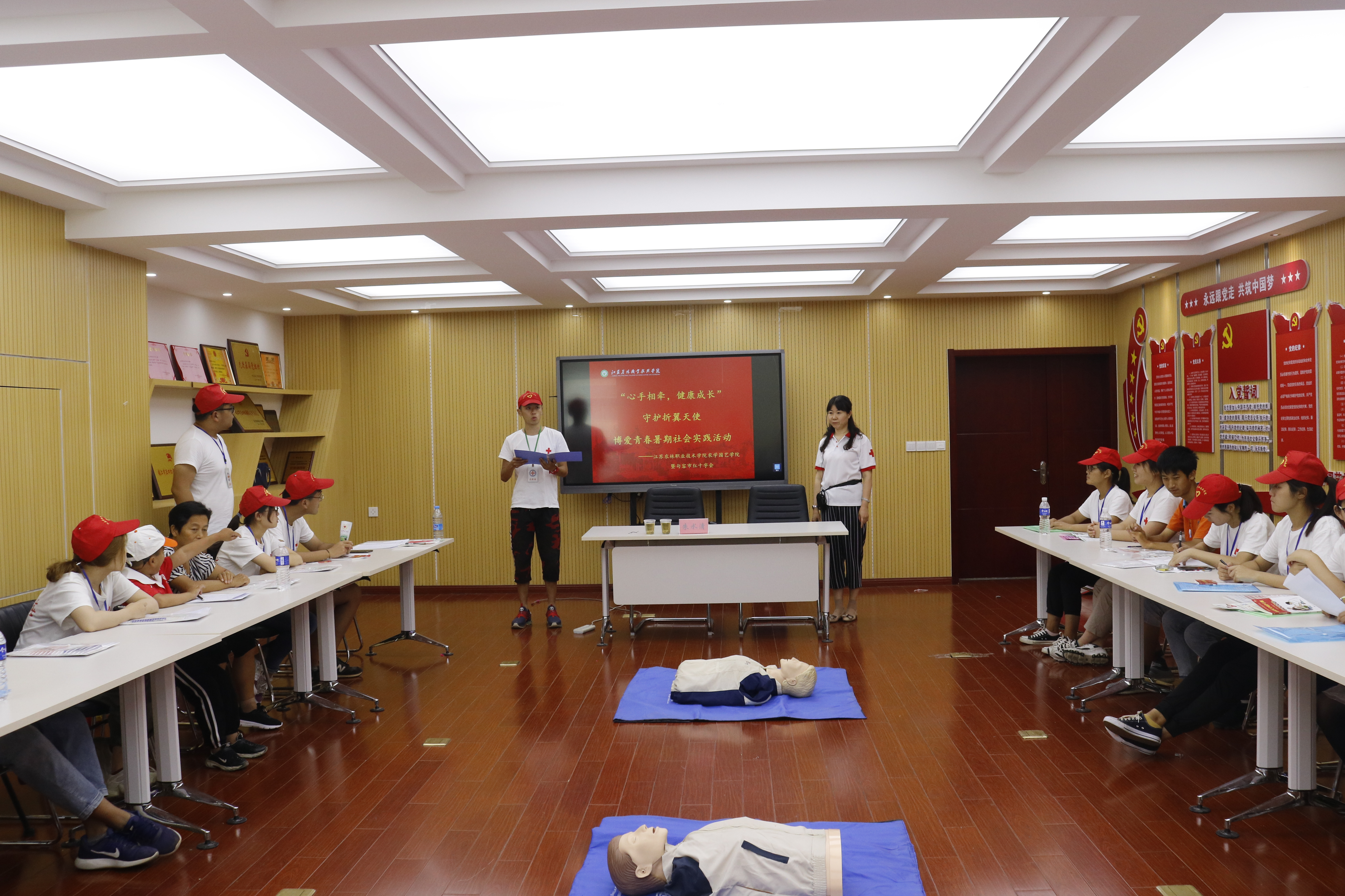 为进一步普及应急救护常识,提高特殊儿童家庭的基本救护能力,2019年7月4日,农学园艺学院“博爱青春——让我走进你的世界”暑期社会实践团队邀请到句容市红十字会的老师在研发楼二楼会议室开展“心手相牵,健康成长”急救知识培训活动,帮扶儿童、家长及暑期实践志愿者们参加了此次活动。
