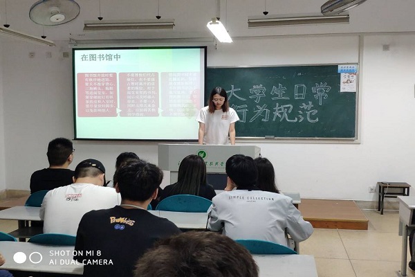 班会上,各班级组织学生认真学习《高等学校学生行为准则》、《江苏大学生文明公约》、《江苏农林职业技术学院大学生日常行为规范》以及“六讲”“六无”和“八文明”内涵,开展大学生文明行为规范养成教育大讨论活动,学习贯彻党的教育方针,以培养学生良好的道德品质和文明习惯、创建和谐校园为工作重点,加强基础文明教育,全面提升大学生的文明素养水平,努力营造文明、优美、和谐的校园文化氛围,加快学院内涵发展。