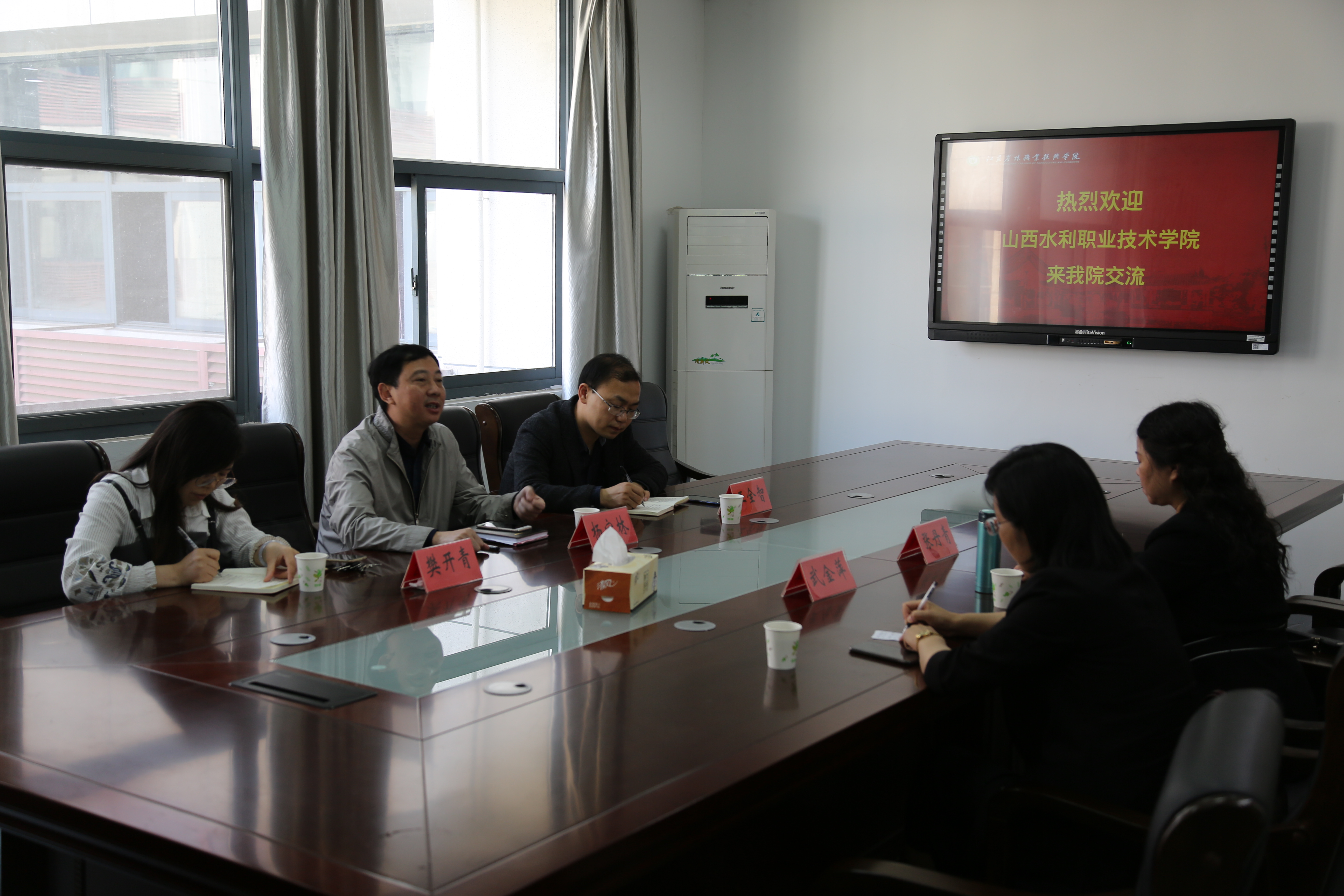 5月9日,山西水利职业技术学院资源环境系主任武金萍、副主任张丹青一行来我院进行访问交流,双方在我院研A204会议室召开了座谈会,我院杨宝林书记、王全智副书记及资环教研室教师参加了此次座谈。