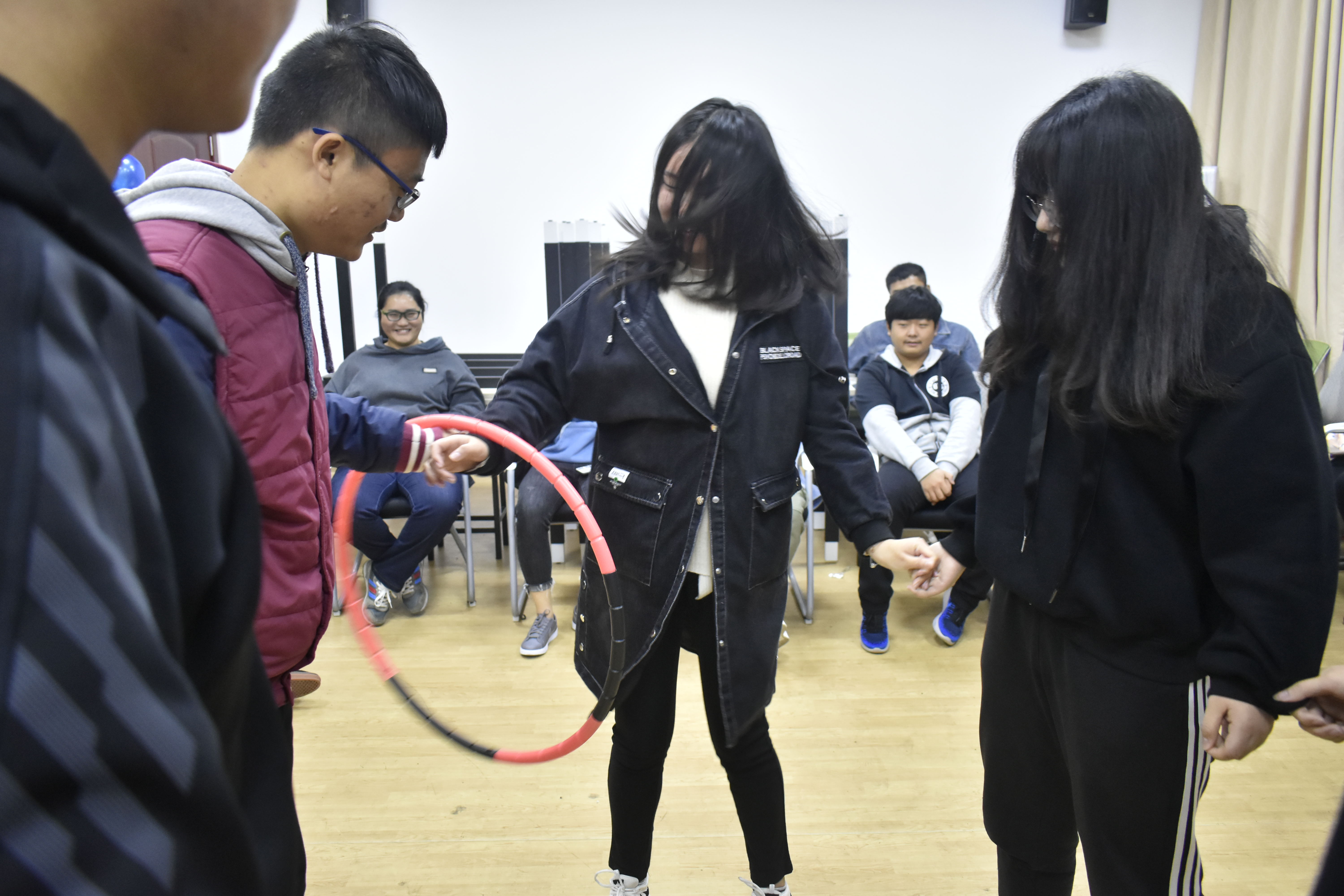 活动中,“人体呼啦圈”、“合力吹气球”、“解开千千结”、“人椅”、“拍七令”等游戏,让同学们轻松欢快的氛围中打开了心灵的枷锁,每位同学都全身心的投入游戏之中,并通过肢体接触与语言交流的方式,和团队成员之间形成了团队合作意识。在学会了互相信任、互帮互相、团结一致的同时培养了自信心,散发出青春的光芒。