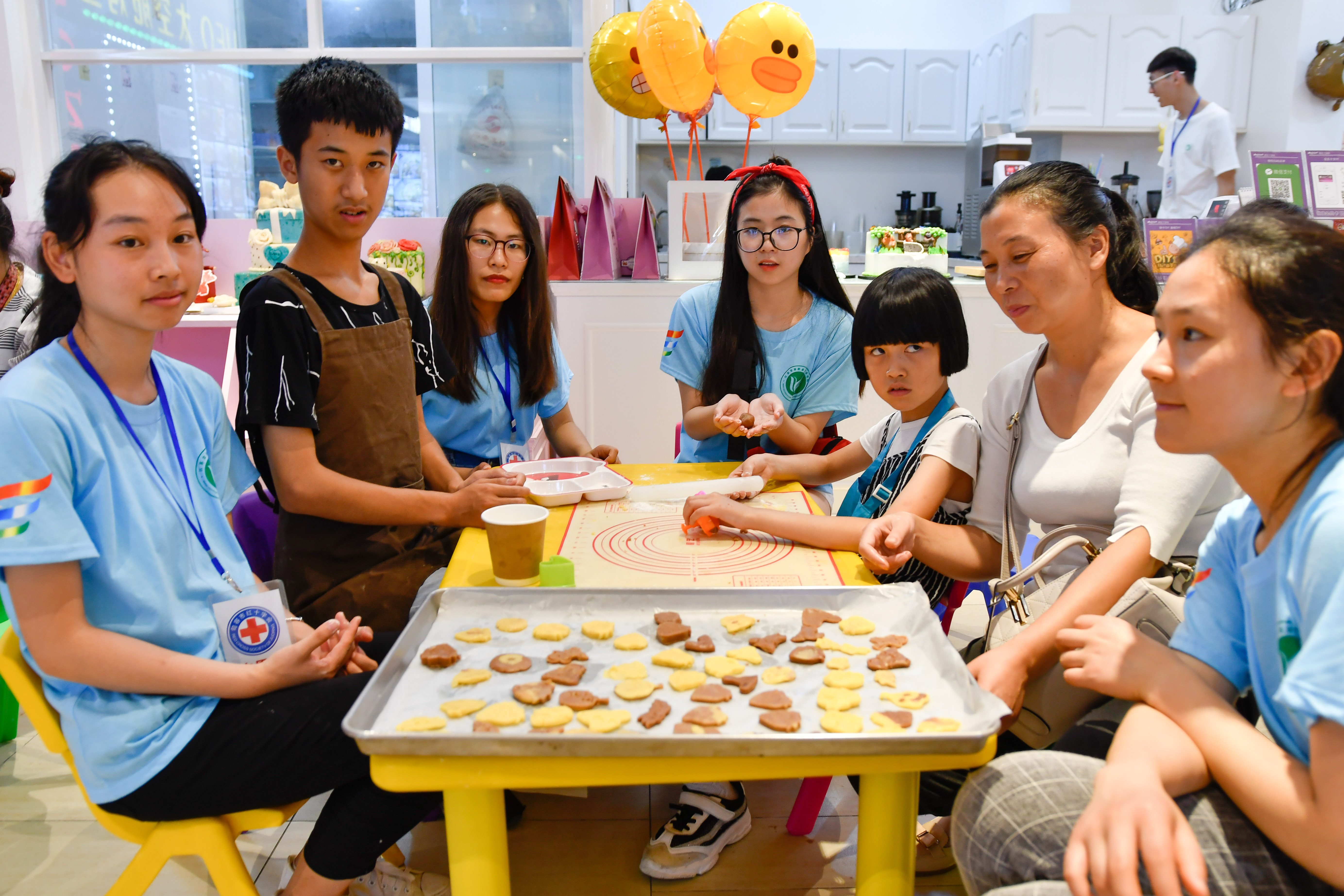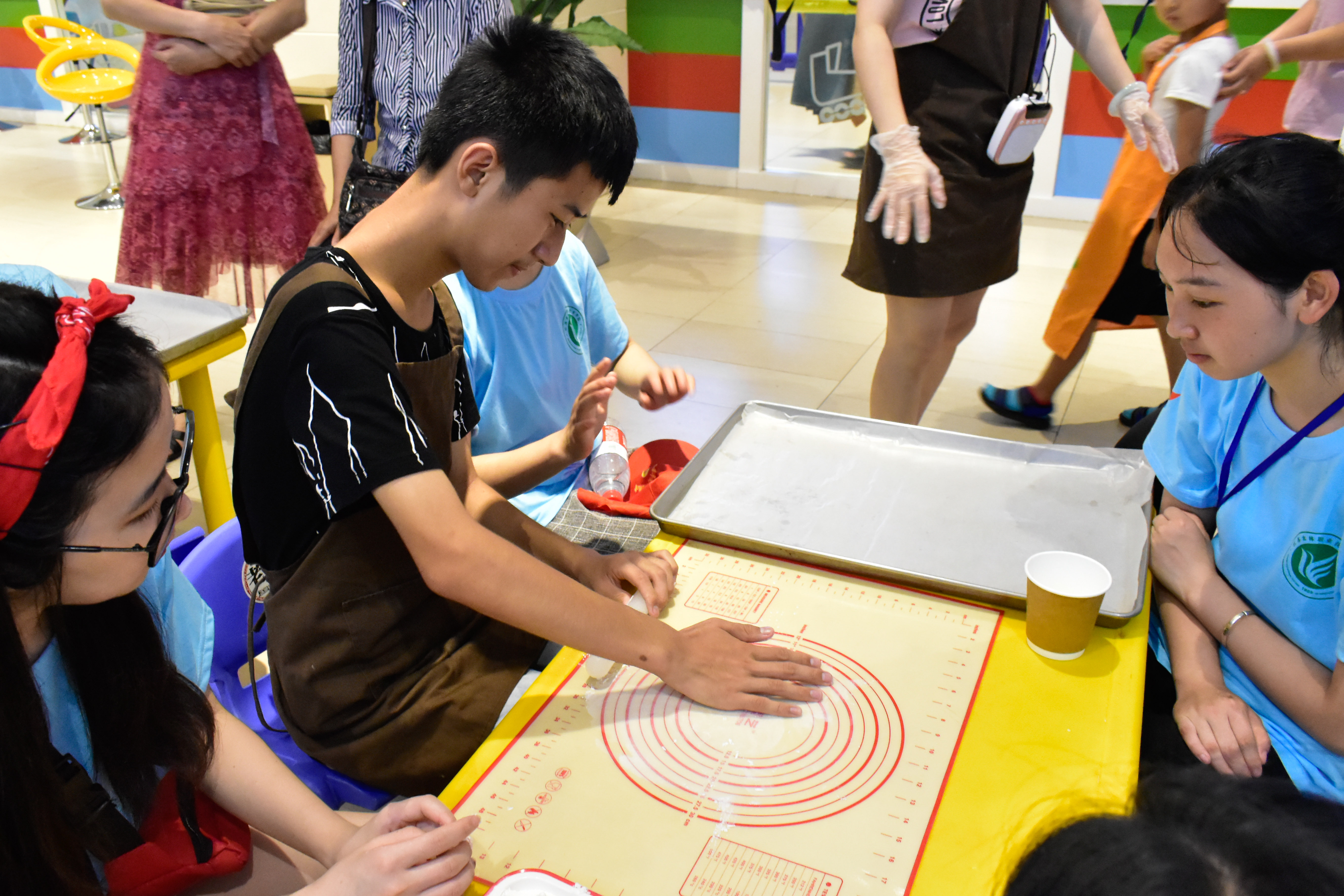 2018年7月6日,农学园艺学院“博爱青春”暑期社会实践团队带领折翼天使们来到中央商城樱妮卡手工烘焙店开展“烘焙体验,健康成长”活动。