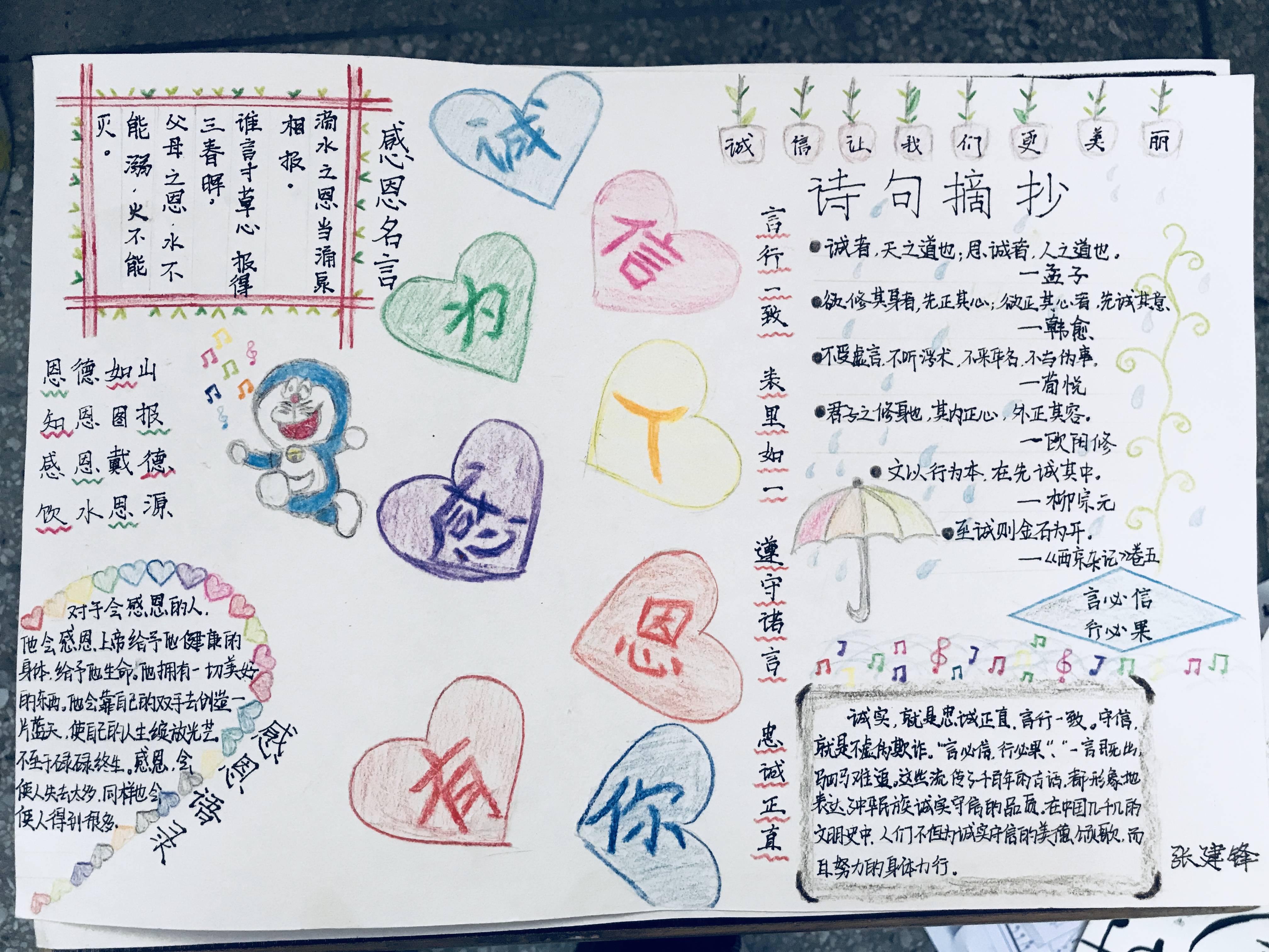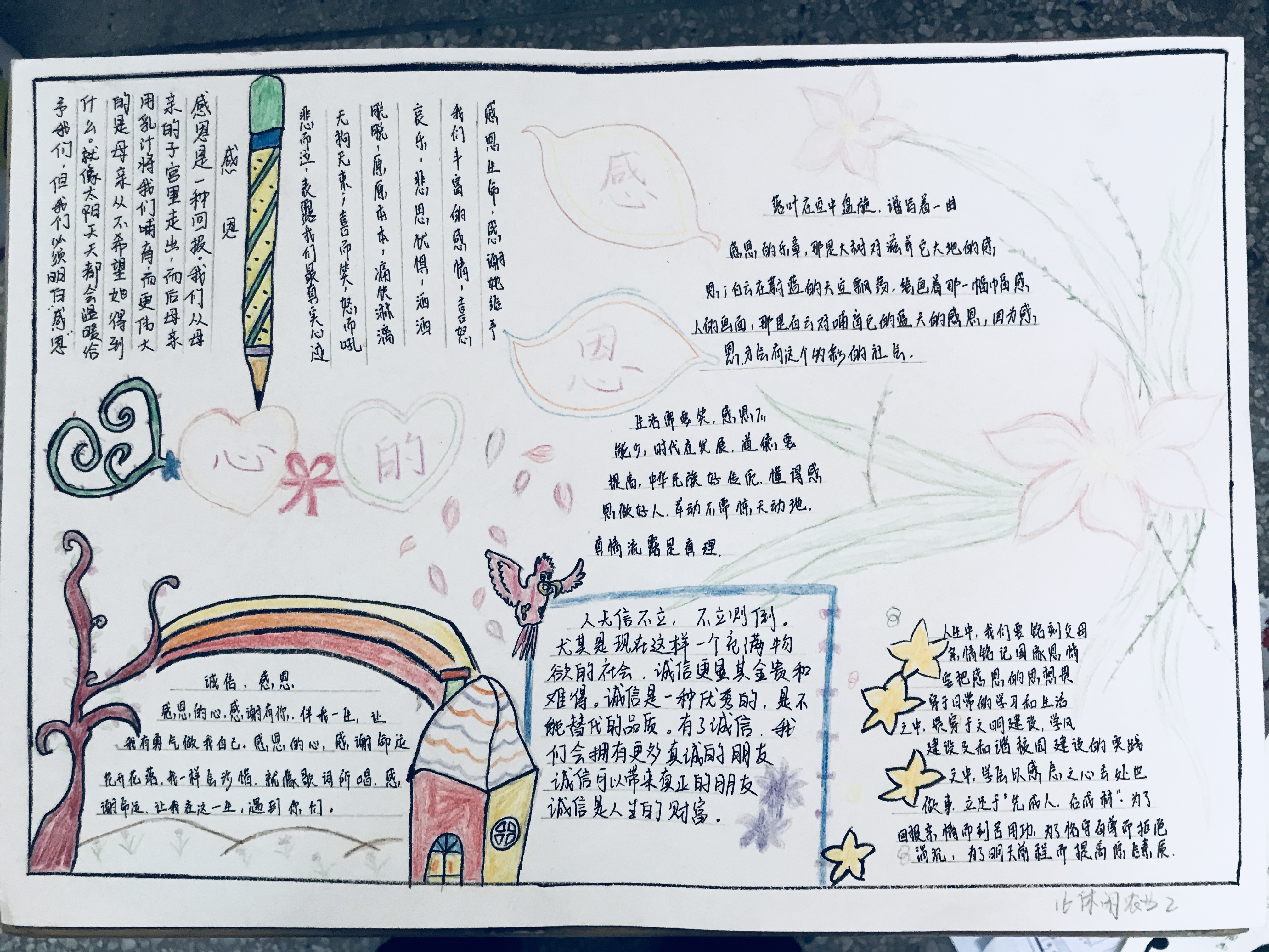 为进一步促进学生提高诚信意识,培养诚信品质,让广大学生懂得感恩,励志成才, 2018年5月22日至6月6日期间,农学园艺学院开展了以“诚信为人,感恩有你”为主题的手抄报比赛。