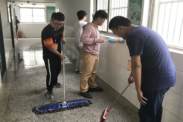 活动中,各志愿者首先与宿管阿姨交流学习宿舍楼的管理保洁工作,明确工作任务与要求后便热火朝天地打扫起来。看着志愿者们里里外外不停忙碌的身影,宿管阿姨的脸上露出了欣慰的笑容。经过几个小时的认真工作,志愿者们用汗水换来整栋宿舍的干净整洁,同时他们也深刻的体会到了宿管阿姨的艰辛和不易,不知不觉间增进了学生和阿姨之间的感情。活动结束以后,宿管阿姨对志愿者进行评价,负责人也选出了优秀志愿者并颁发了奖励证书。