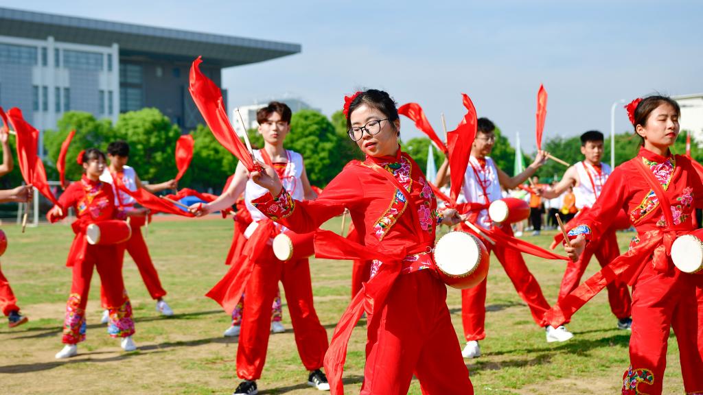 4月20日上午,我院方阵整齐划一,士气高昂,伴随着欢快喜庆的锣鼓曲,18名青春活力的腰鼓队员们敲打着铿锵的鼓点,鼓槌上的红彩绸激情舞动,腾空飞跃、蕴含民族特色的舞姿,迎来掌声不断。