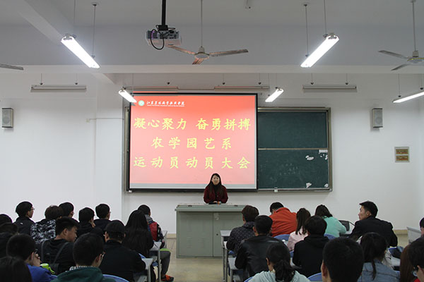 3月28日下午,农学园艺系在J1A203召开了“凝心聚力,奋勇拼搏”运动会动员大会。分团委书记嵇怡老师以及系学工办老师出席了会议。