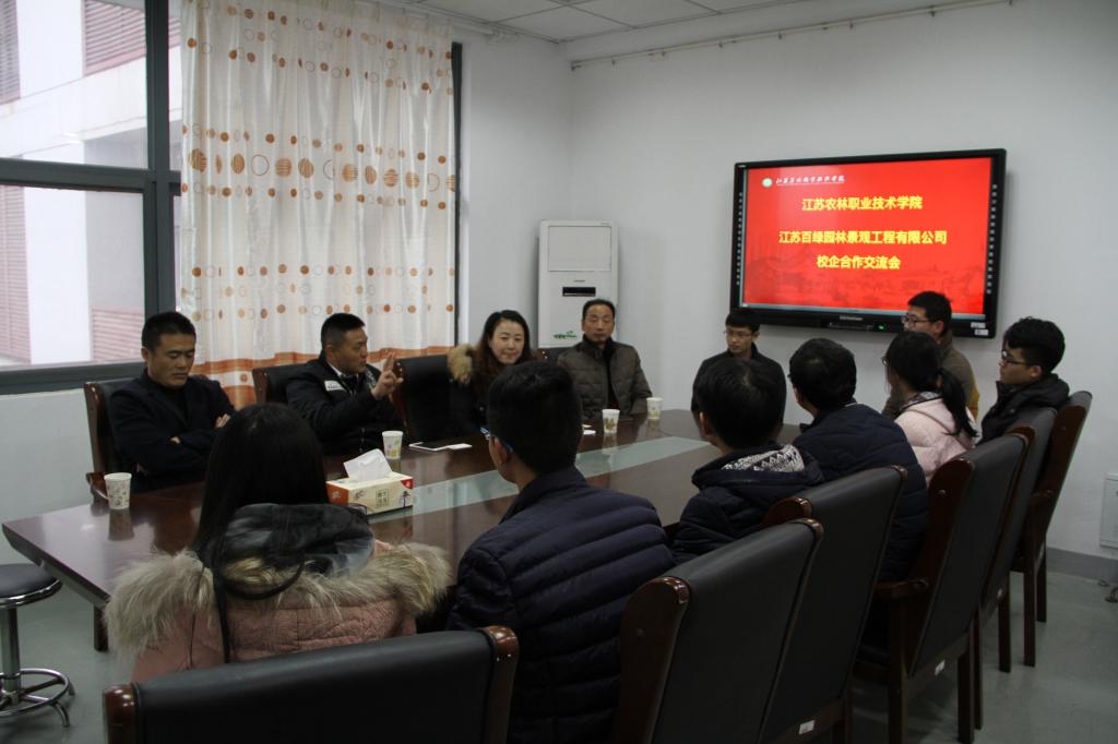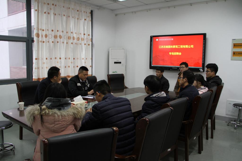 2016年1月6日,江苏百绿园林景观工程有限公司庄城来董事长一行2人来农学园艺系开展专场招聘,农学园艺系党总支副书记董慧及其系部资环教研室相关老师、系部10名应聘学生参加了会议。