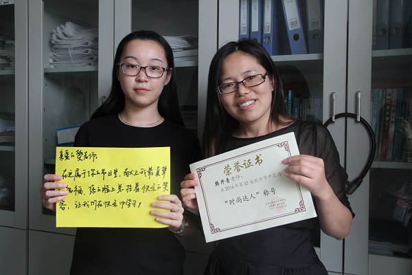 ”活动,以向老师颁发奖状的形式,表达对老师的感恩之情,“最佳劳模奖”、“最和蔼可亲奖”、“儒雅男神奖”等,学生心目中的老师各有特色,奖项丰富生动,每一张奖状背后都饱含了同学们对老师深深的爱和祝福。活动中,同学们还把自己最想向老师“表白”的话写在纸上,连同DIY水杯一起送给老师,祝愿敬爱的老师们幸福满满“一杯子”。