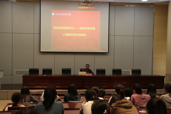 2016年5月11日,围绕大学生创业与就业主题,农学园艺系在研发楼报告厅组织部分创业校友开展了讲座。此次讲座的主讲人分别为农学园艺系12级园艺技术班裴浩,系部80多名学生倾听了讲座。
