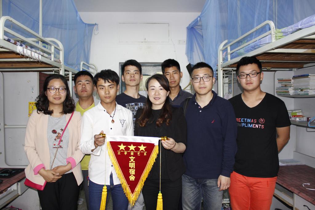 为深入推进宿舍文化建设,给学生营造良好氛围,4月下旬,农学园艺系7栋、10栋大学生社区服务站联合系心育部、分团委举行了宿舍文化节系列活动之特色宿舍最美寝室评选活动,并于54日下午举行宿舍授旗仪式,系部党总支副书记董慧、辅导员、班主任参加了仪式。