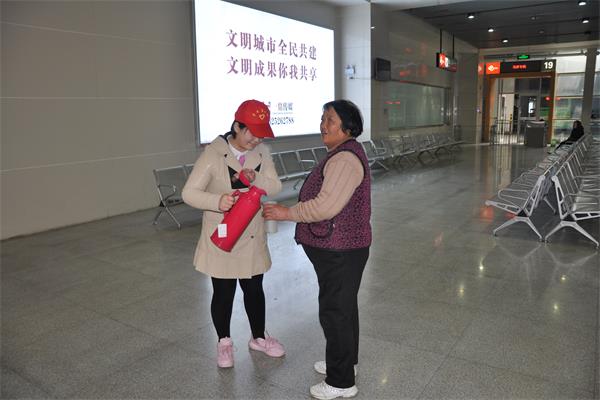 活动中,在车站工作人员的指导下,志愿者们分为三组,分别在咨询台、检票口和候车大厅展开服务。在咨询台,志愿者们协助车站工作人员为旅客解疑答惑。在检票口,志愿者们为来往的旅客们提供引导,帮助行动不便的乘客提运行李,提醒旅客文明候车。在候车大厅,志愿者们认真打扫了大厅卫生,擦洗了候车室座椅,为候车旅客送上热水。