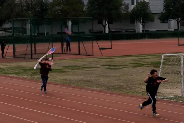 在活动中,同学们把各自的梦想写在风筝上,通过同学们相互协作、配合默契,在田径场上放飞着各式的风筝,尽情享受着春日的阳光和放飞的喜悦。同学们轮换着尝试放飞的感觉,他们时而商议放飞技巧,时而迎风小跑,时而又定步抖动手中的丝线……看着风筝展翅高飞,渐渐飞上云端与太阳亲密接触,大伙脸上都洋溢的欢乐、幸福的笑容。
