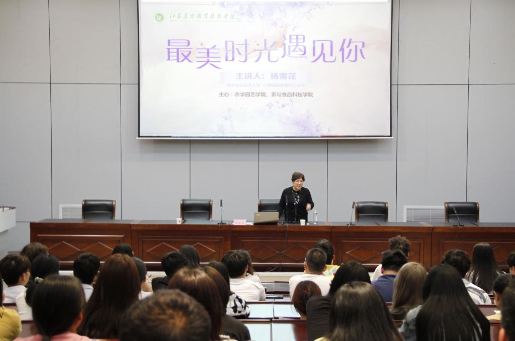 为引导大学生树立正确的恋爱观,提升大学生心理健康水平,5月18日,农学园艺学院联合茶与食品科技学院在研发楼报告厅举办“最美时光遇见你”大学生恋爱心理讲座。讲座邀请到了南京航空航天大学心理健康教育中心主任杨雪花老师担任主讲嘉宾。