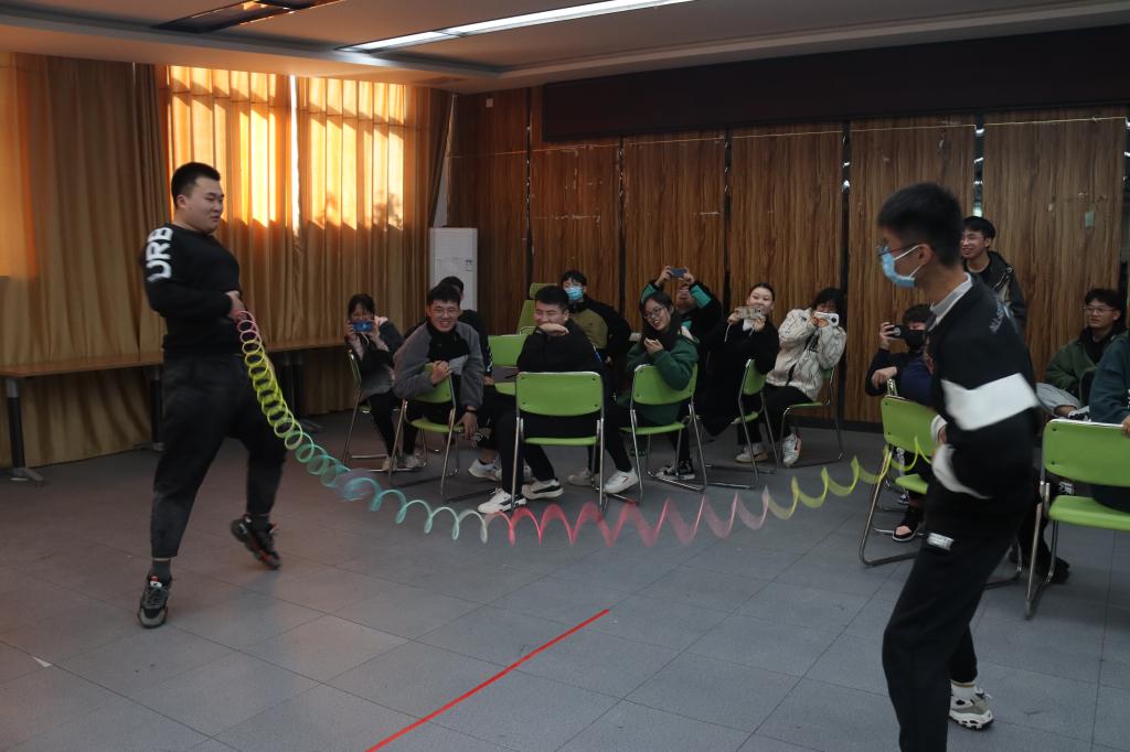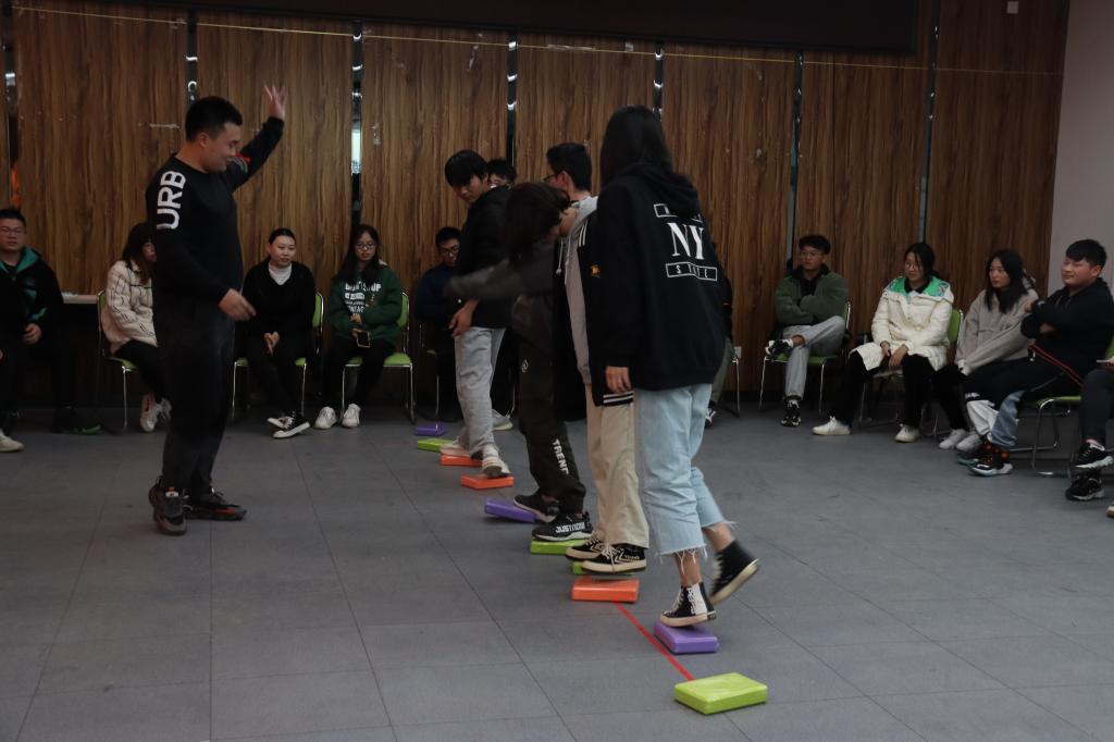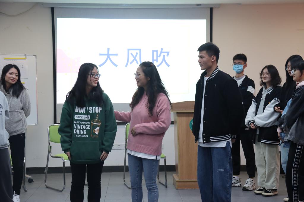 活动开始,黄老师让大家自我介绍,用“按摩体操”的游戏帮助大家放松身心,营造出轻松愉快的氛围。随后通过“大风吹”的游戏,让大家在游戏中找到自己与同伴们的相同特点,进而拥有了一种归属感,活跃了活动现场的气氛。接着通过“彩虹拔河”、“摸石头过河”、“你画我猜”三个游戏环节,强调了在日常生活中,团队合作、积极沟通、共同努力往往才是成功的最优解,让大家意识到团队合作的重要性,要学会换位思考,共同进步。