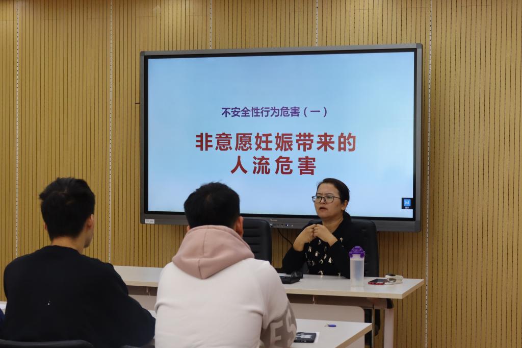 杨老师结合自己近年来开展防艾健康教育活动的经验,为同学们生动形象地阐述了艾滋病的发展起源、传播途径以及预防和治疗措施等相关知识。随后,老师通过视频带领同学们了解“生命的起源”和 “流产的危害”,告诫同学们一定要学会自我保护,培养文明健康的生活方式,避免感染艾滋病。